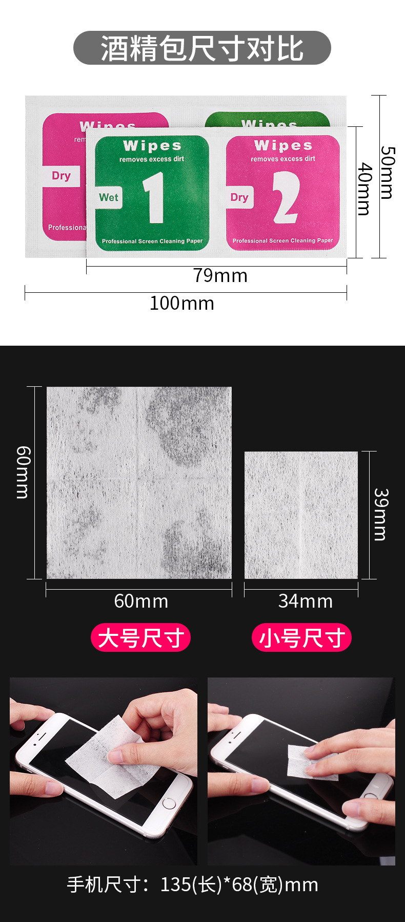 Одноразовые сухие и влажные спиртовые ватные листы в индивидуальной упаковке, вспомогательный инструмент для очистки и дезинфекции экрана мобильного телефона