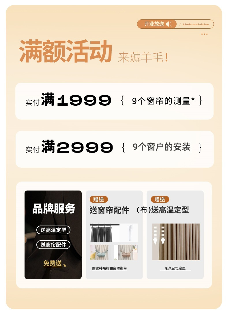 ![]() | Whole house custom package | 7-window set meal, cloth curtain, more refunds and less compensation | ¥2199.0 / ≈ 26 523 ₽ | 0 | 5788814699908 | |