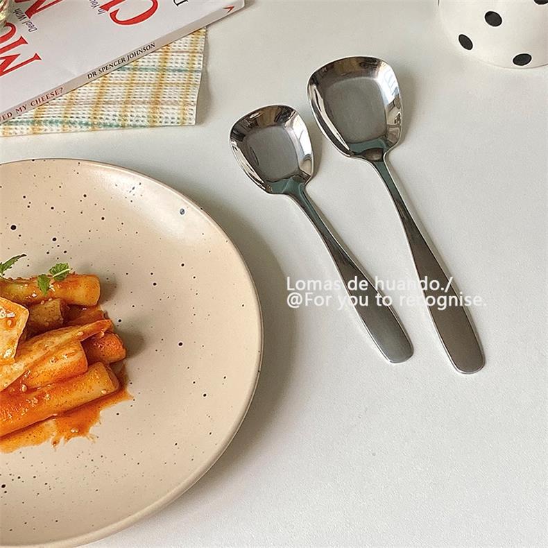 Корейская ложка для десертов, ложка для йогурта, утолщенная нержавеющая сталь, квадратная голова