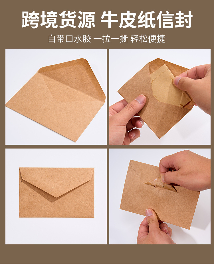 Кросс-бордерные мини конверты из крафт-бумаги, утолщенные клейкие конверты в европейском стиле, бумага для писем в наличии, оптовые конвертные сумки