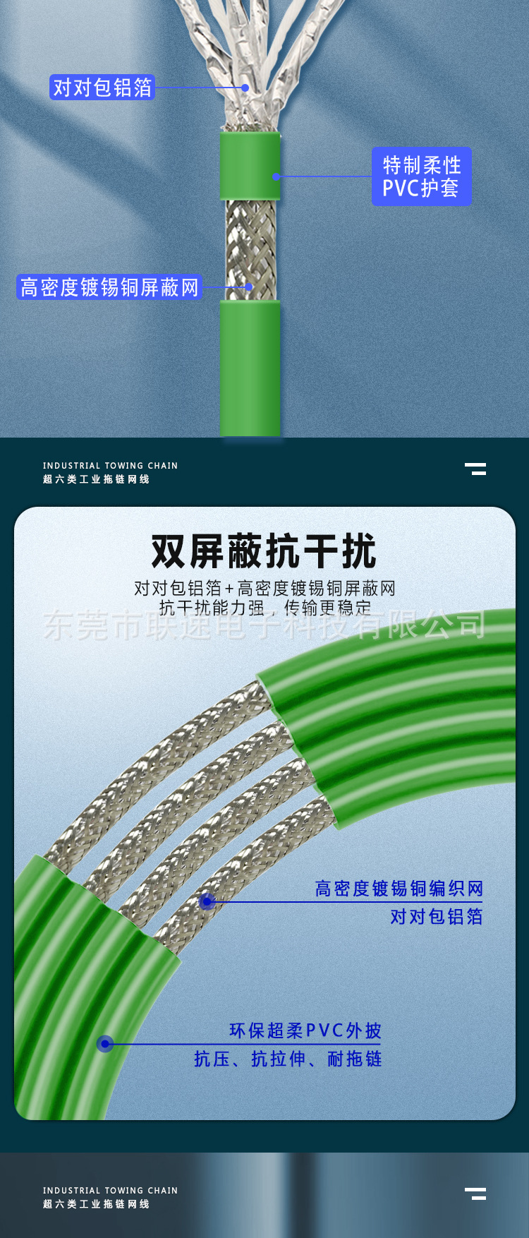 Промышленный сетевой кабель Profinet Восьмиядерный двойной экранированный Категория 6E Высокая гибкость