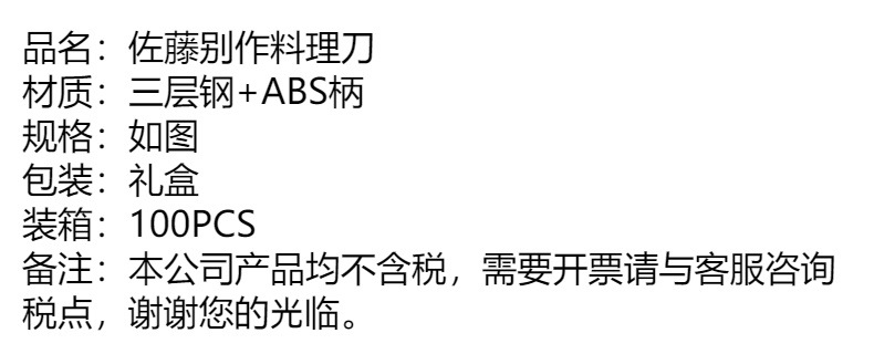 ![]() | Three-layer steel cooking knife | 2шт: ¥32.00, 100шт: ¥30.00, 2000шт: ¥28.00 | 99873 | 5189367986369 |