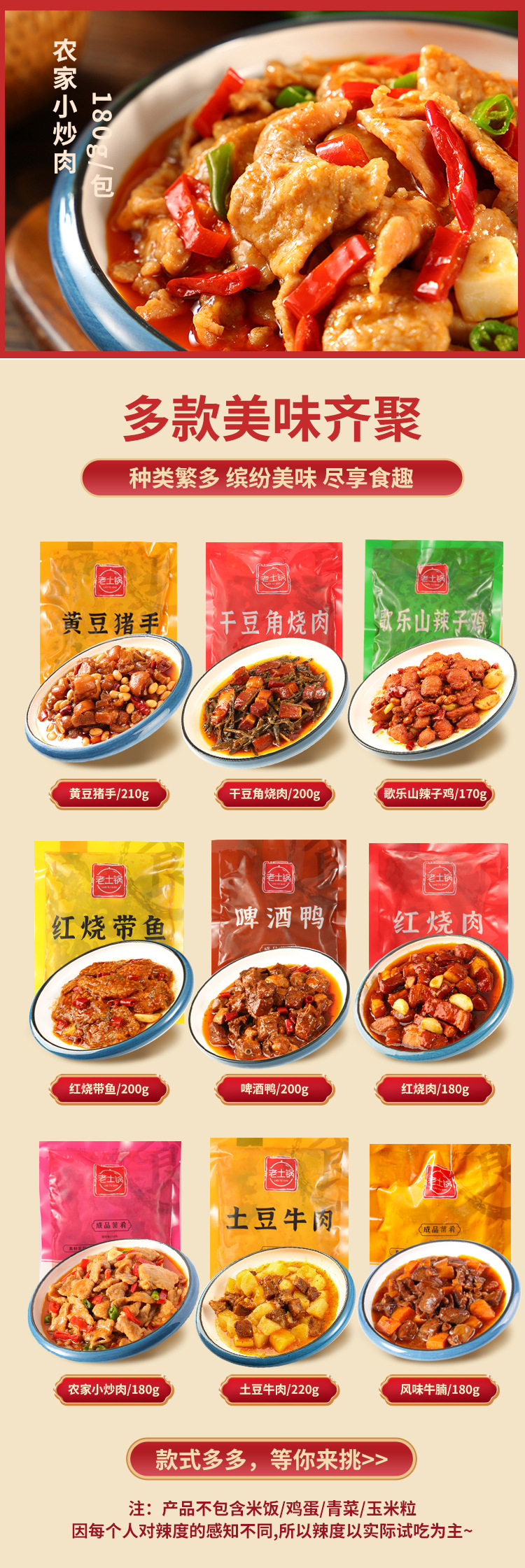![]() | Beef flavored stir-fried pork 180g/bag | ¥4.89 / ≈ 58 ₽ | 9954 | 5917113647539 | |