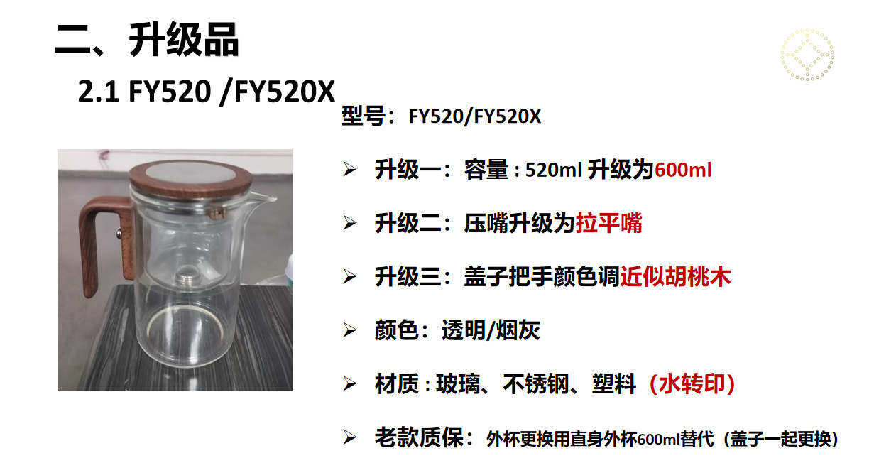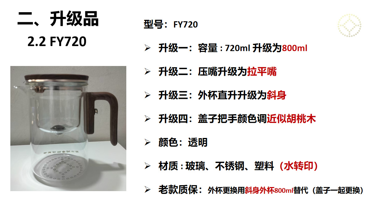 ![]() | Single pot (yf720) upgraded model + 2 small transparent cups | Transparent Walnut | ¥93.5 / ≈ 1 128 ₽ | 7225 | 5764190587755 | |