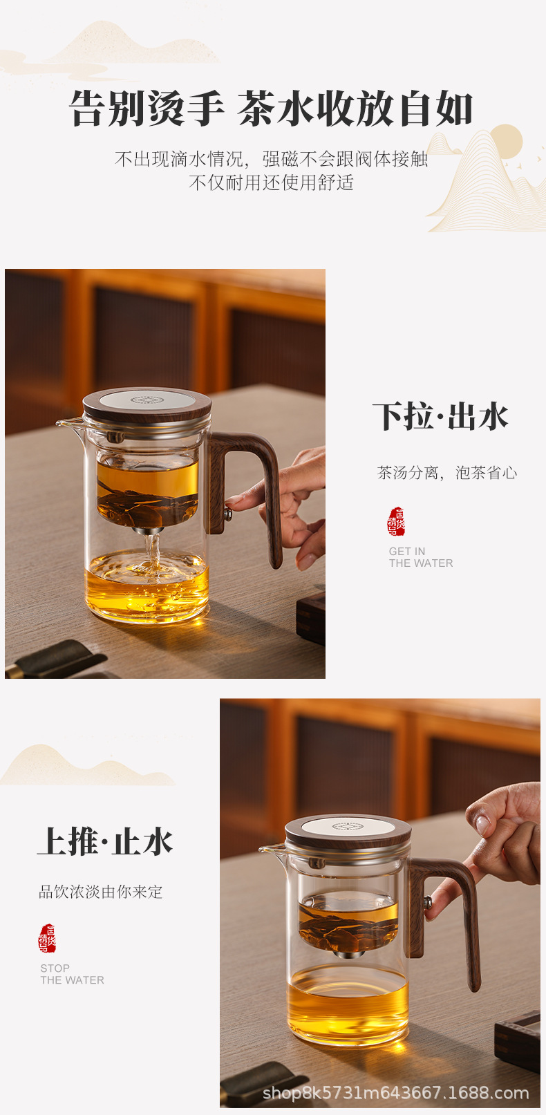 Чайник для разделения чая и воды, жаропрочный, полностью стеклянный внутренний чайник, плавающая чашка, магнитный артефакт для чая, чайный набор