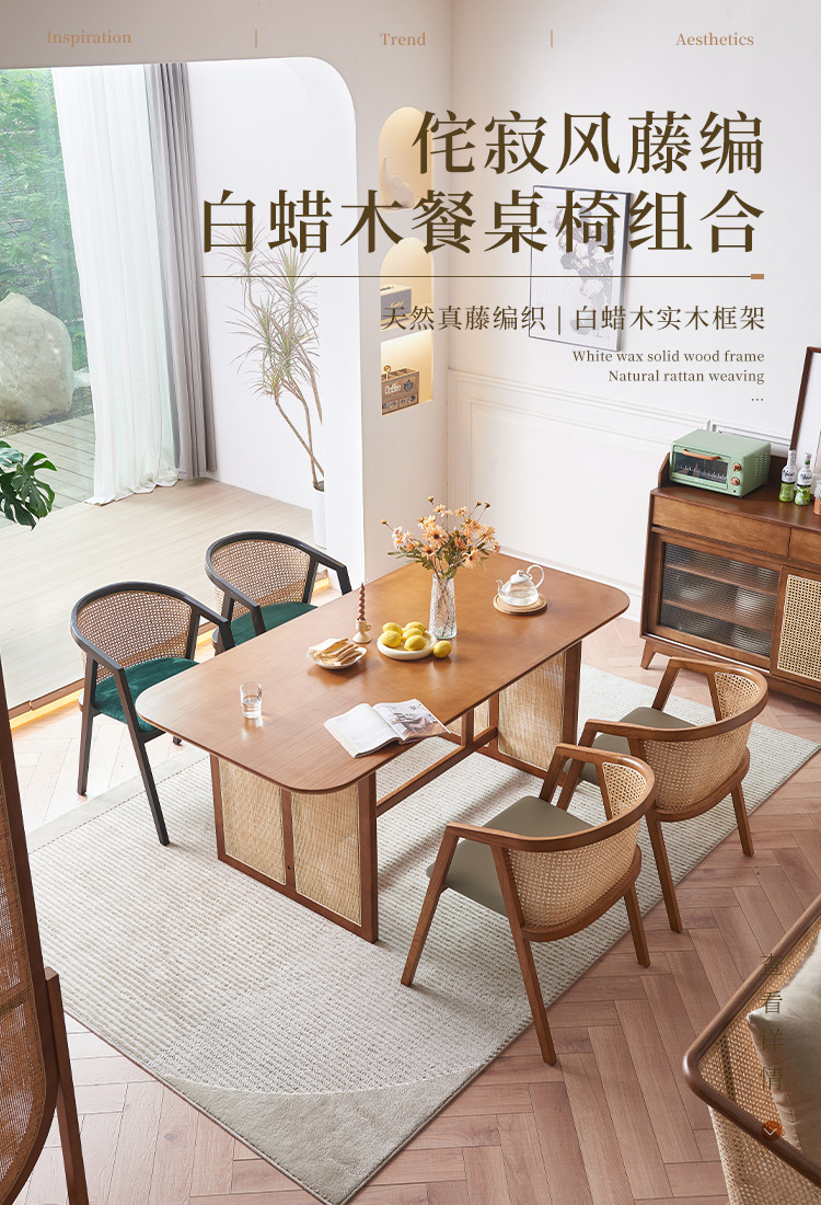 Скандинавский обеденный стол из массива дерева, простой дизайнерский японский стол и стулья, коммерческий комплект для ресторана и отеля
