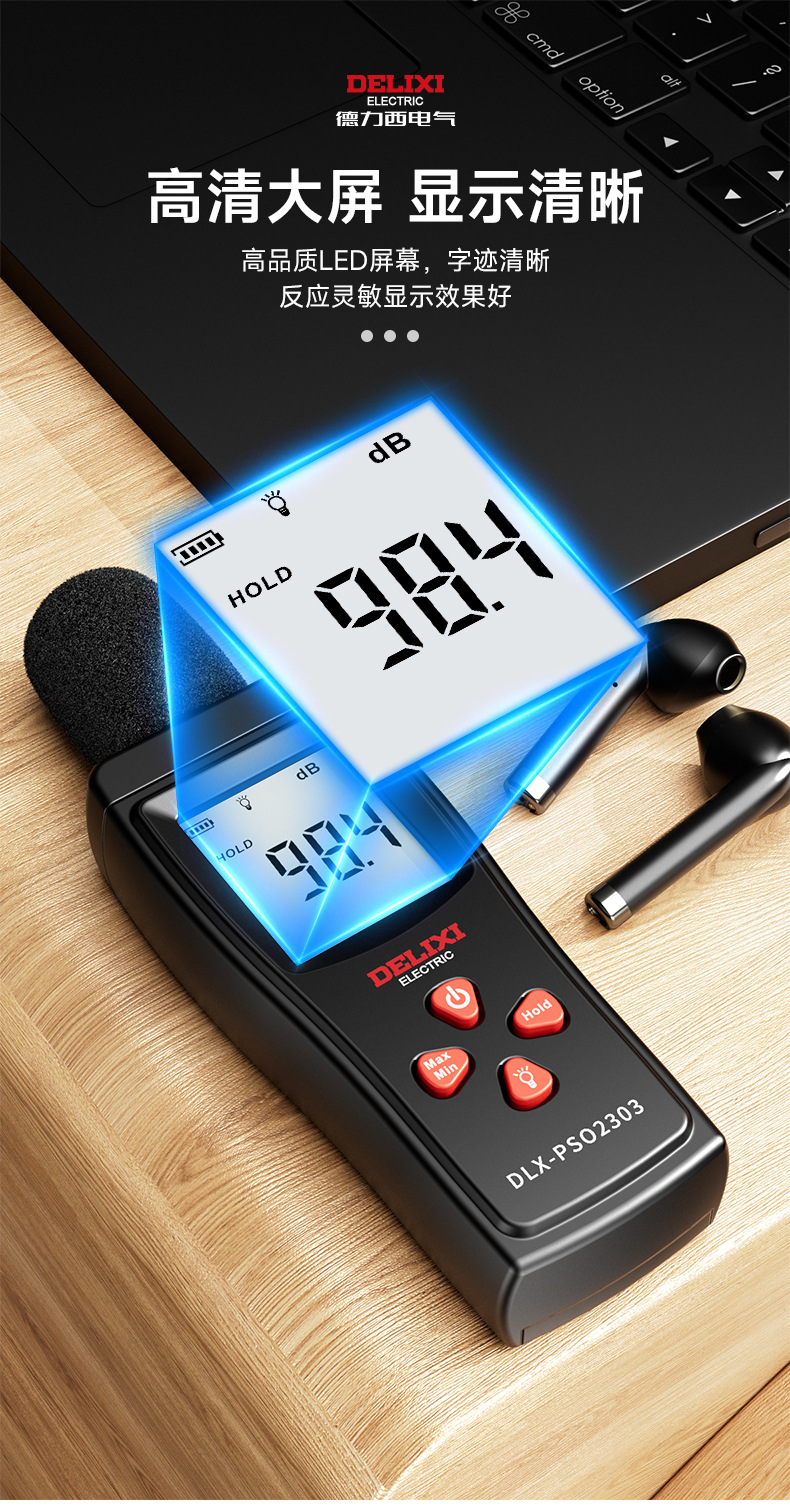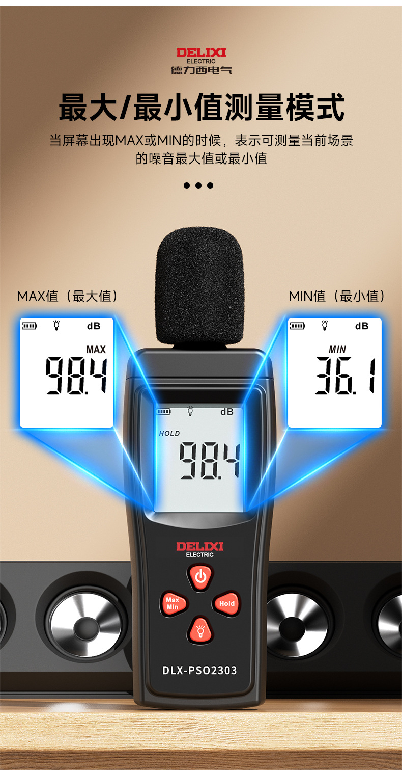 德力西数字式噪音计家用分贝仪检测仪专业噪声音量测试仪批发