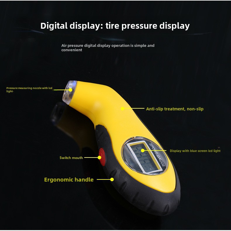 Модель Wholesale, LCD digital display, tire pressure gauge, LED light, digital tire pressure gauge, electronic barometer, tire pressure gauge, backlight
