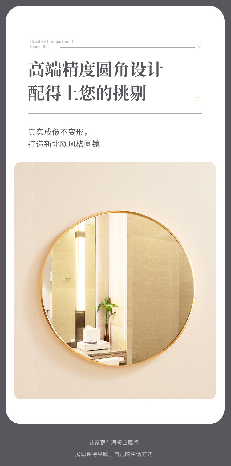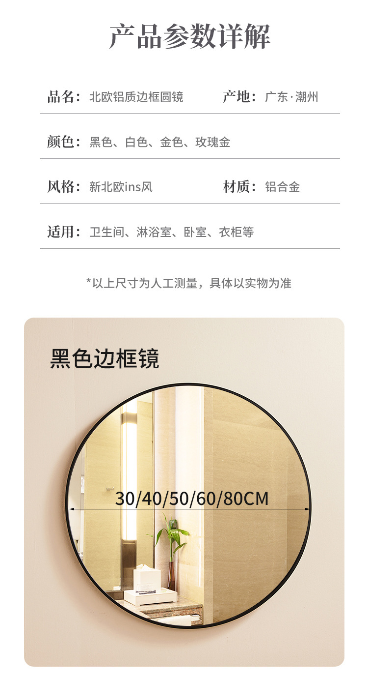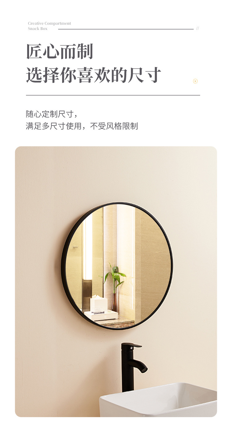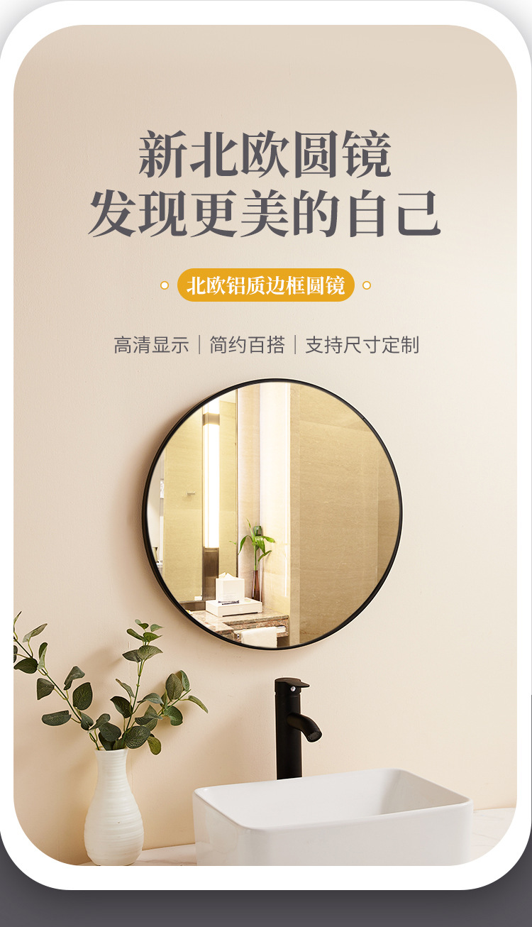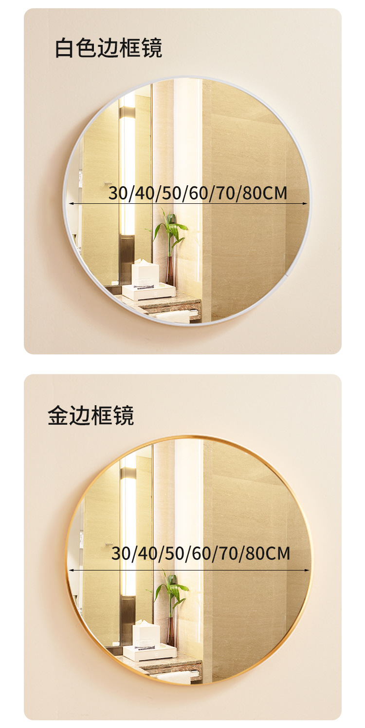 Новое скандинавское стильное зеркало с алюминиевой рамой, круглое, без сверления, косметическое зеркало для спальни