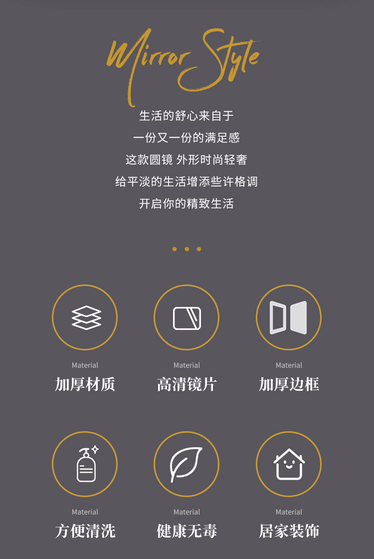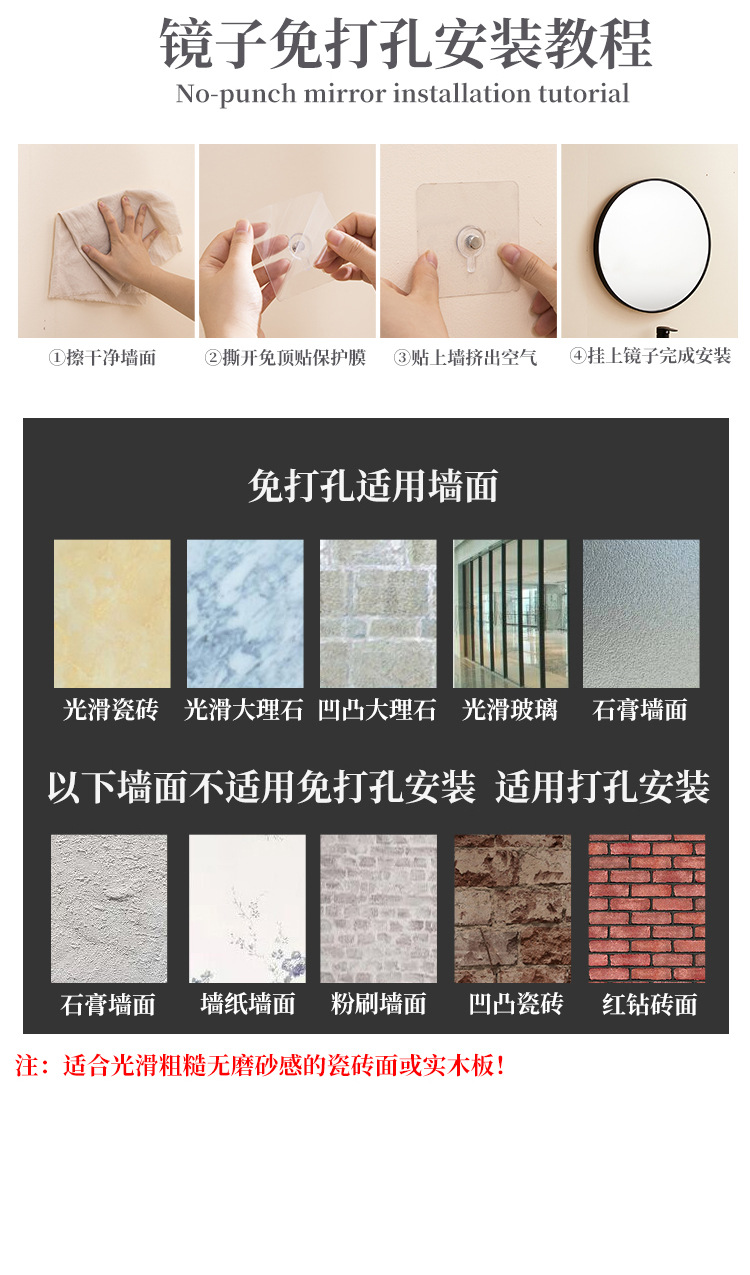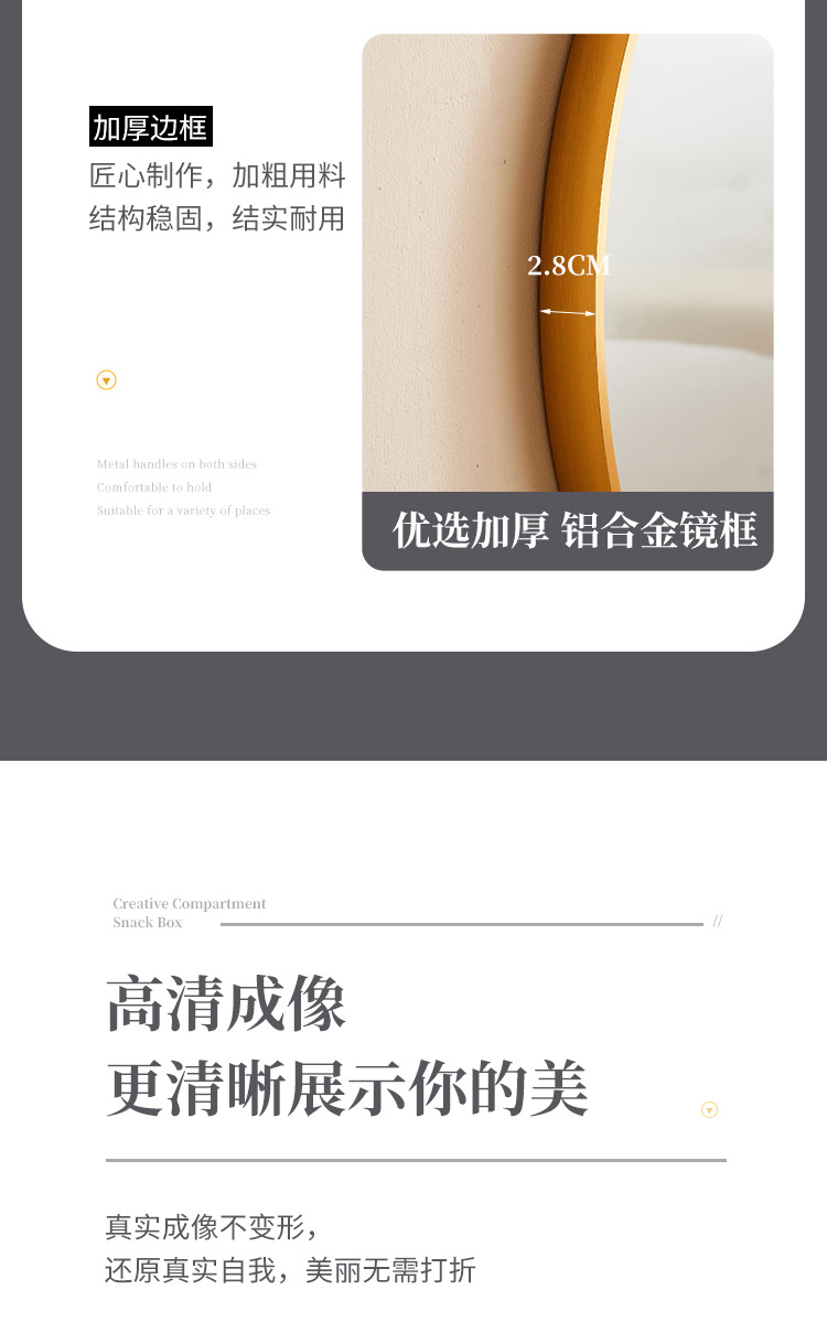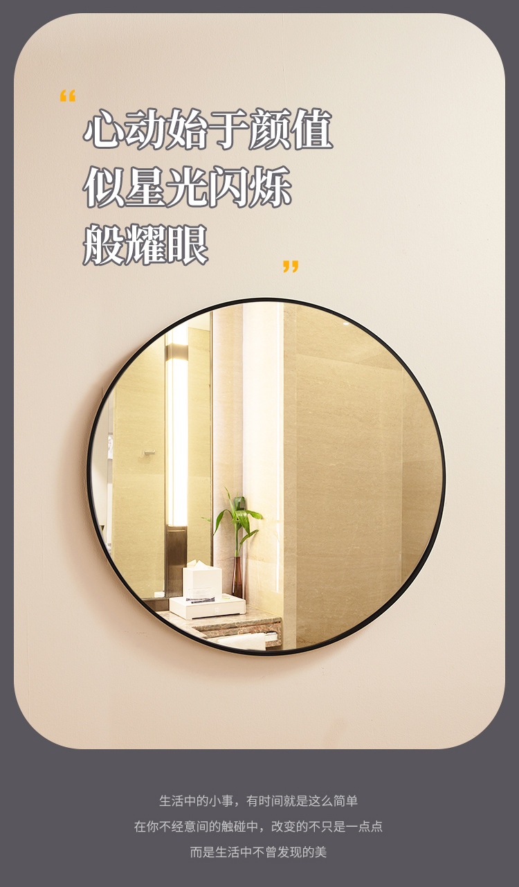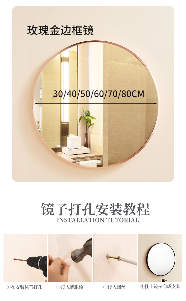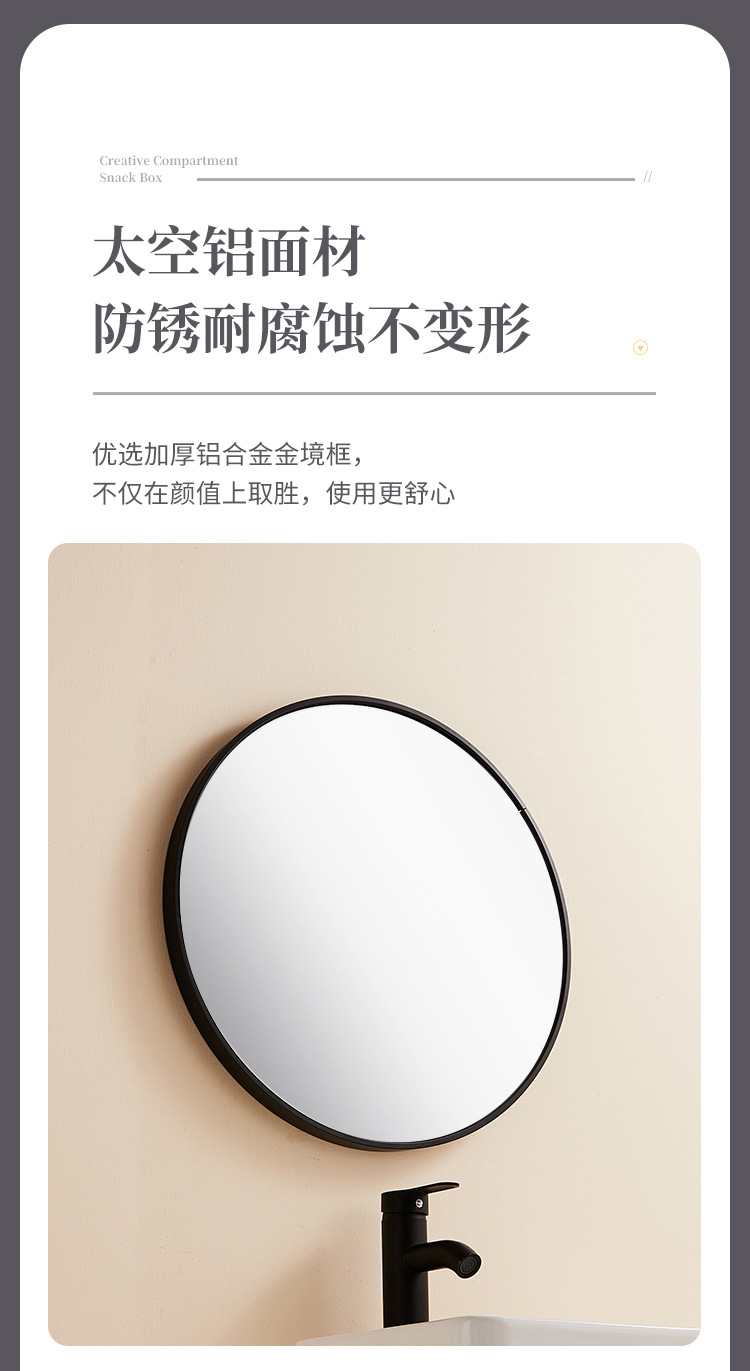 Новое скандинавское стильное зеркало с алюминиевой рамой, круглое, без сверления, косметическое зеркало для спальни