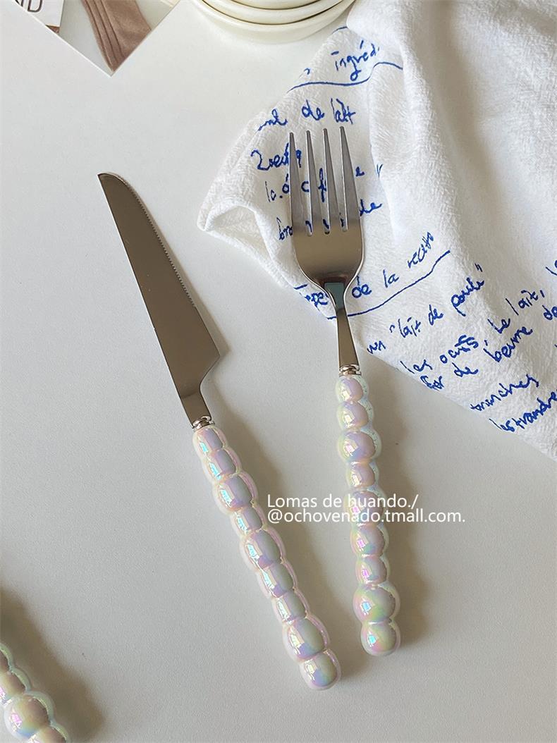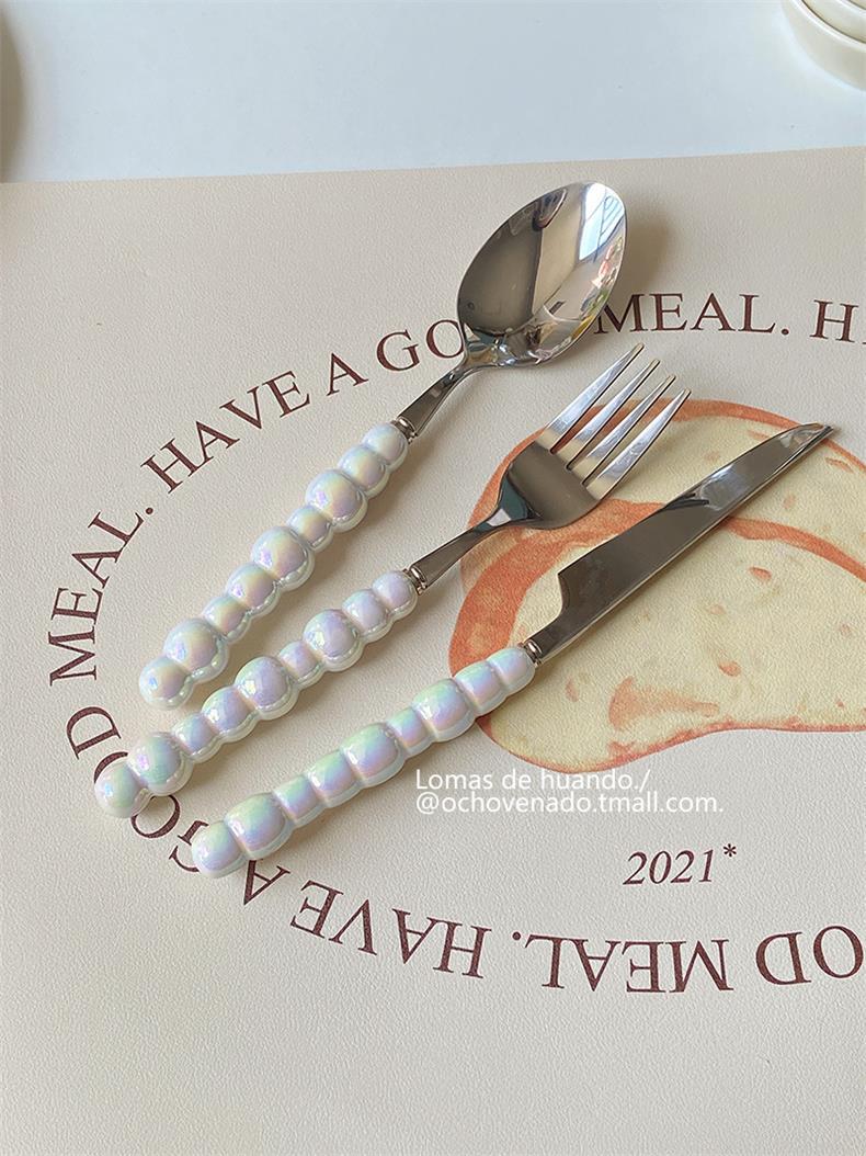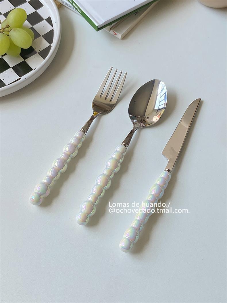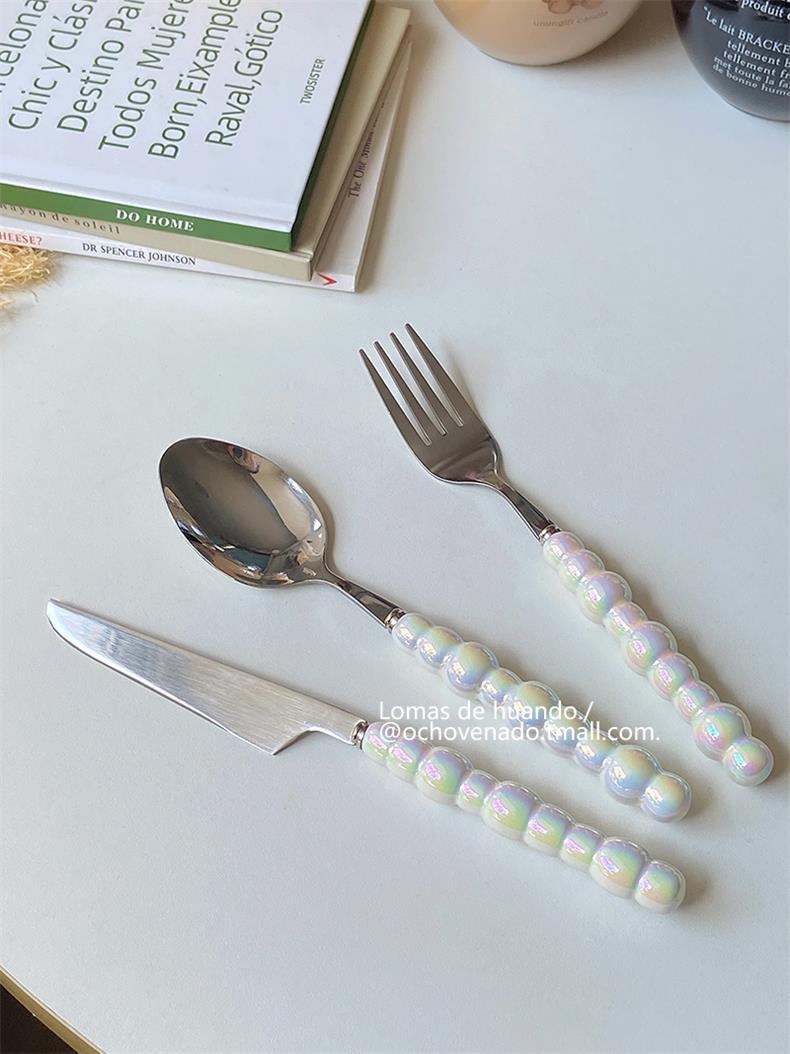 Набор столовых приборов с градиентной перламутровой ручкой, нержавеющая сталь, керамическая ложка, вилка и нож для западной кухни, комбинация для дома и ресторана