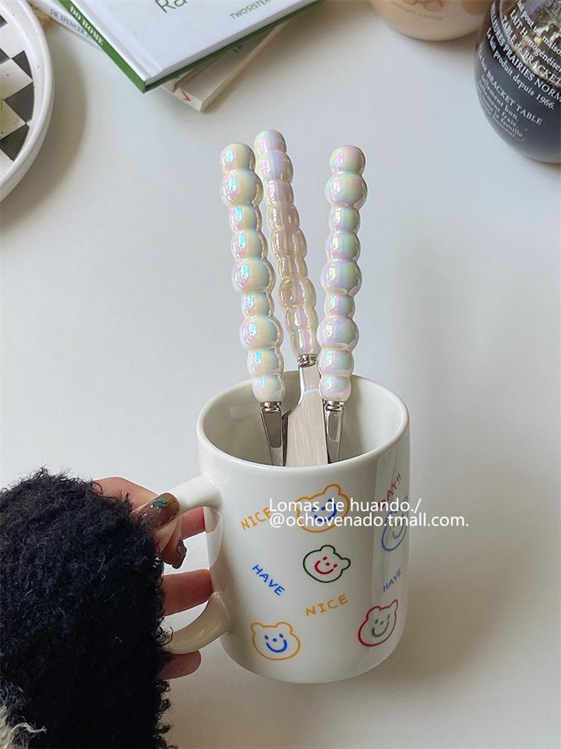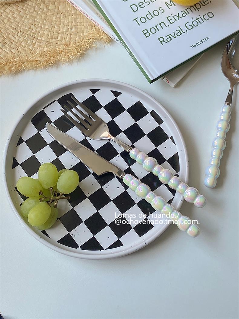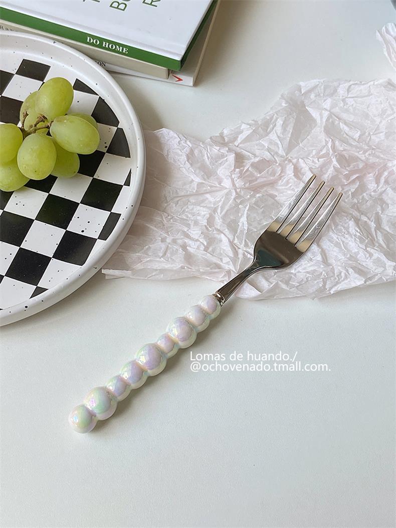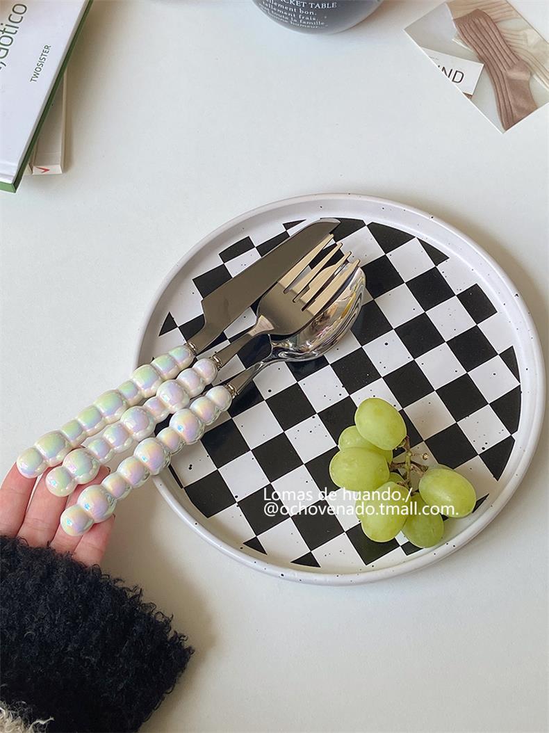 Набор столовых приборов с градиентной перламутровой ручкой, нержавеющая сталь, керамическая ложка, вилка и нож для западной кухни, комбинация для дома и ресторана