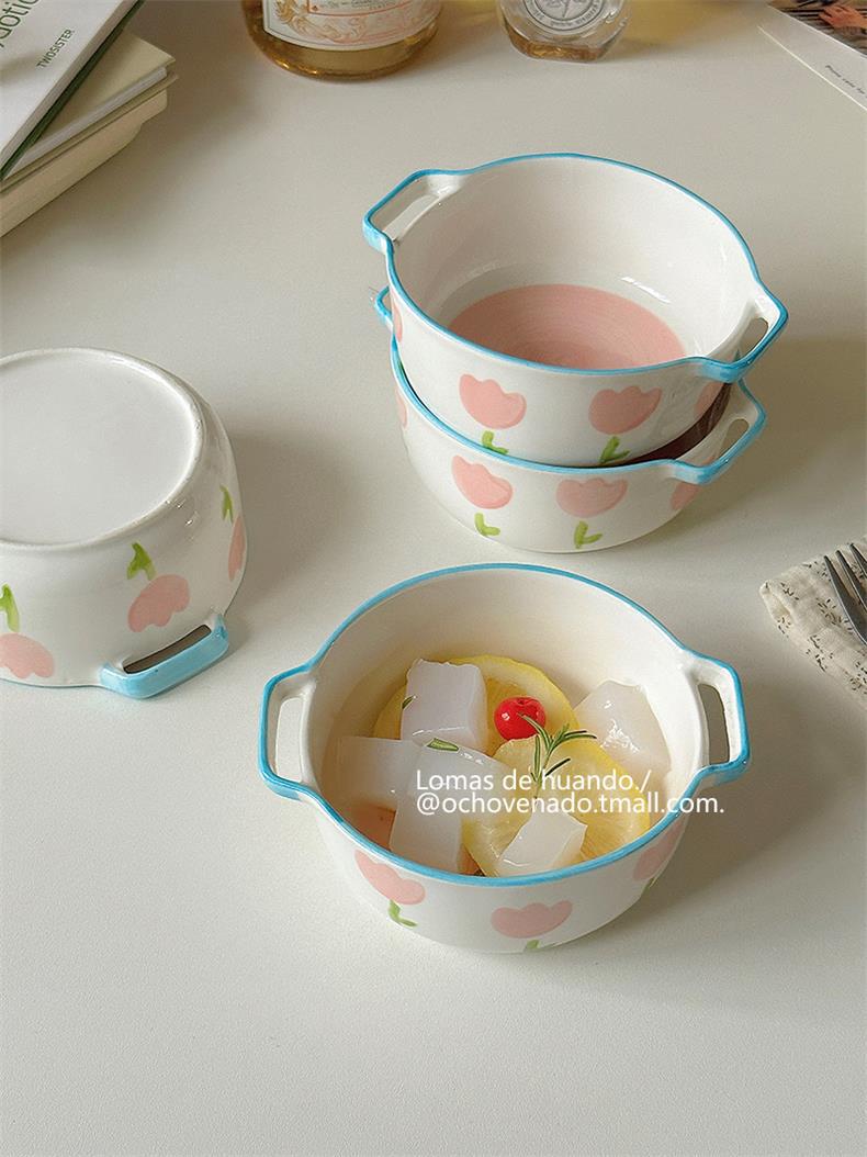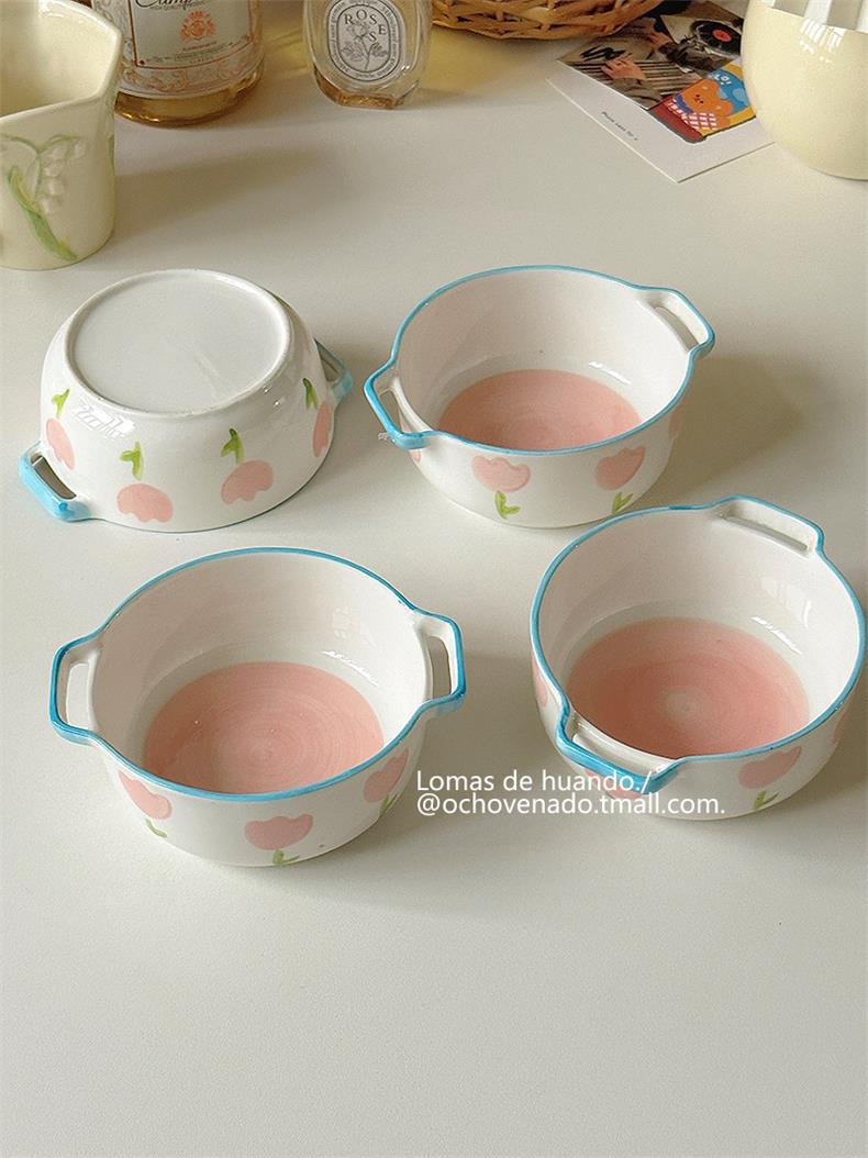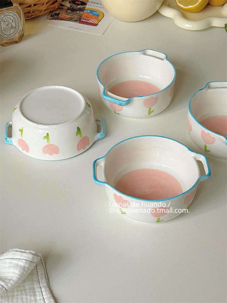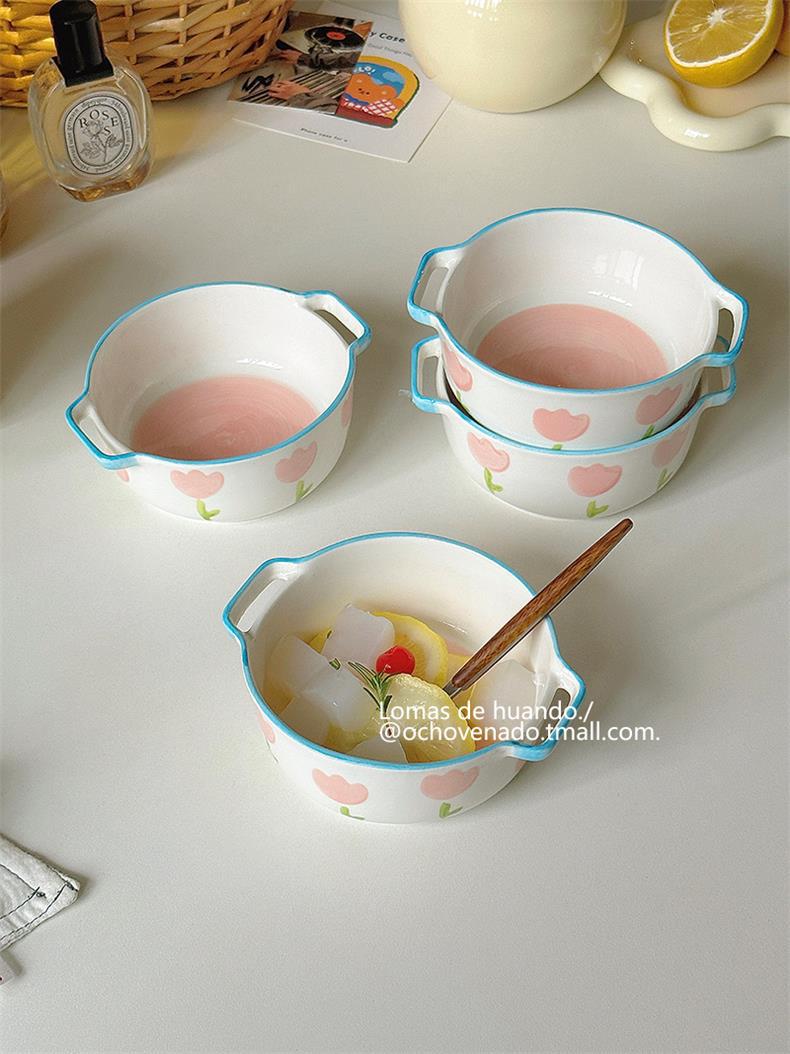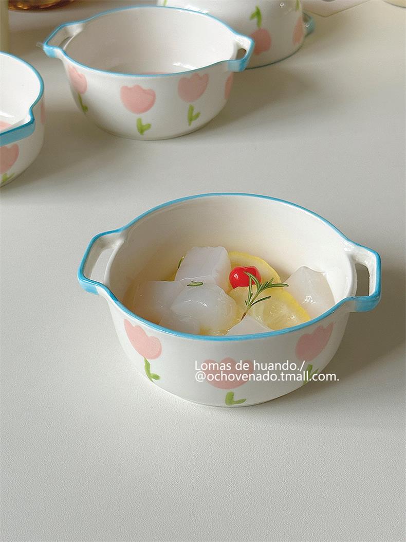 стильная милый тюльпан двойная ушная маленькая чаша домашняя рисовая чаша суповая чаша для выпечки фруктовая чаша десертная чаша чаша для росы подглазурная окраска