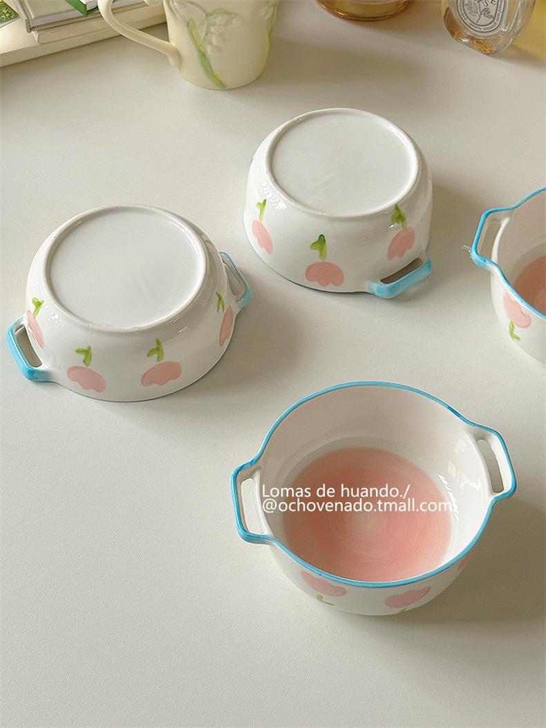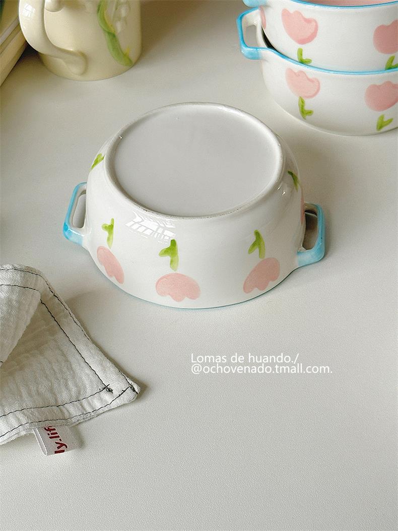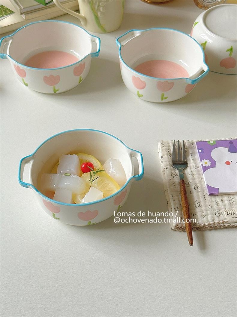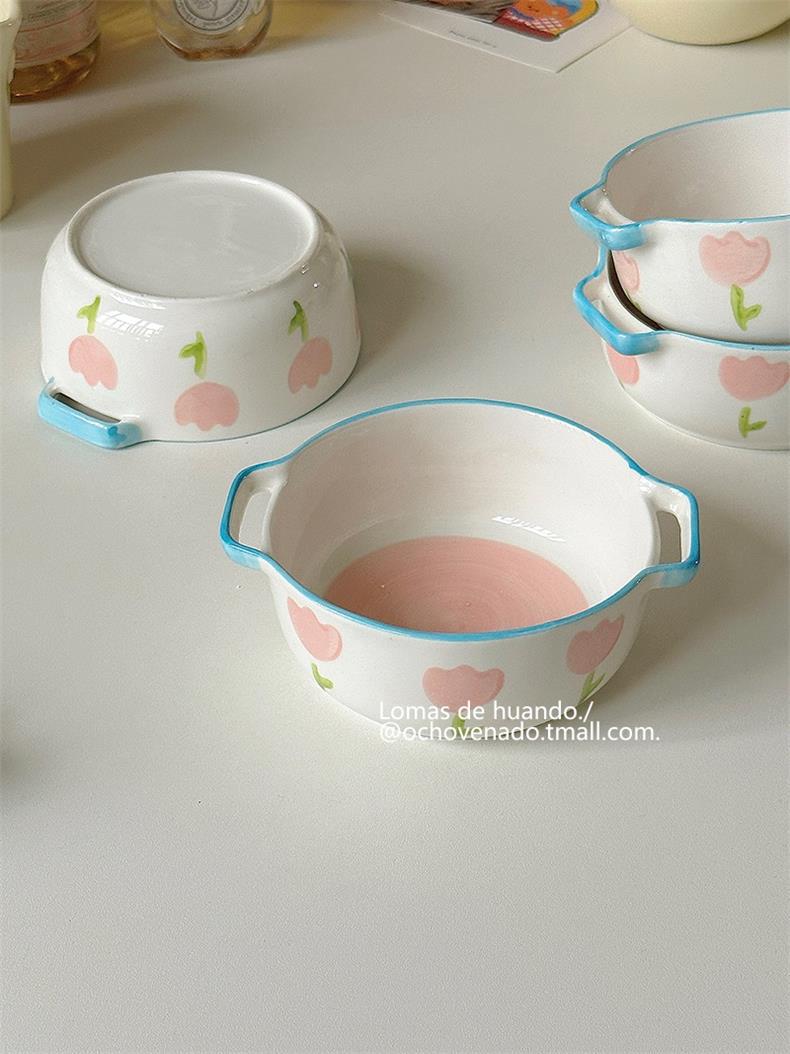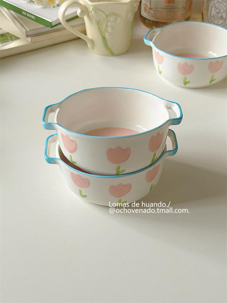 стильная милый тюльпан двойная ушная маленькая чаша домашняя рисовая чаша суповая чаша для выпечки фруктовая чаша десертная чаша чаша для росы подглазурная окраска
