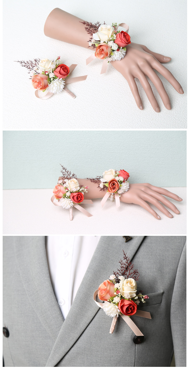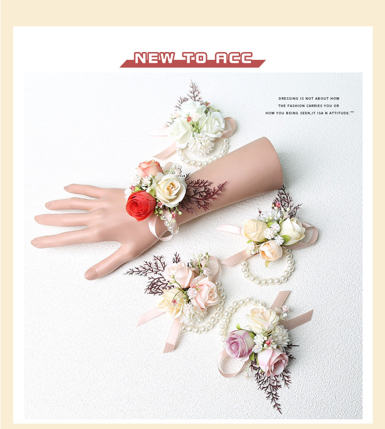 Оптовая продажа красивых маленьких цветочных браслетов для невесты, группы подружек невесты, цветок на руку, шампанское, корсаж, красный, китайская свадьба