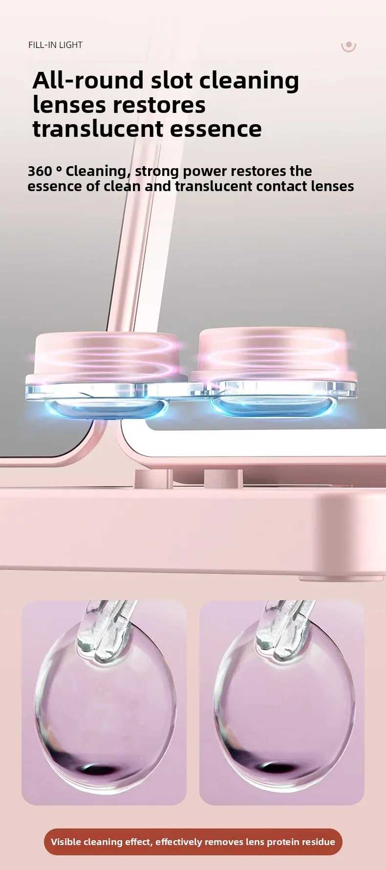 Чистка контактных линз в чехле для очков Meitong, милый электрический автоматический очиститель с вибрацией, косметическое зеркало