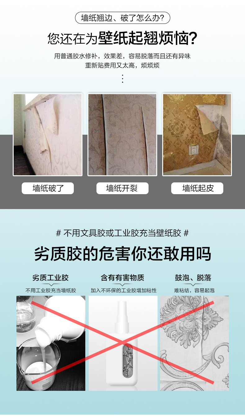 Клей для ремонта обоев, для стеновых тканей, исправление трещин и загибов, домашний клей без регулировки, приклеивание стеновых тканей, новогодний декор