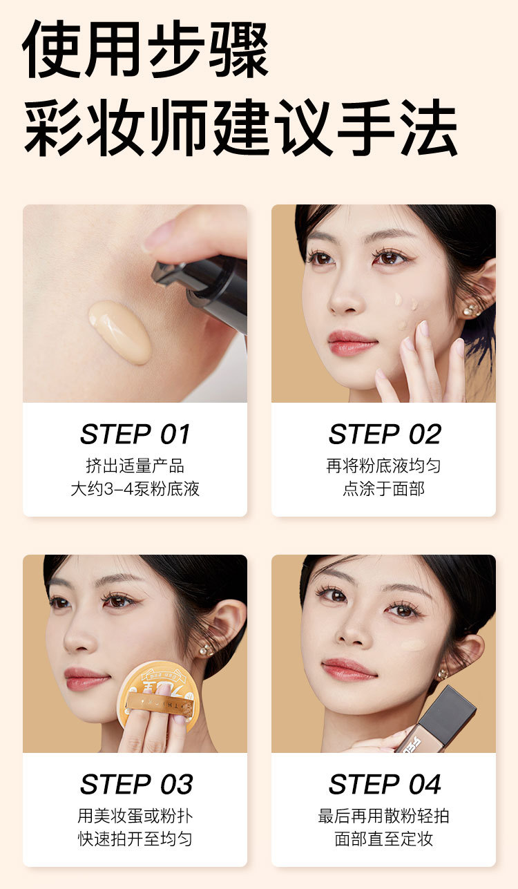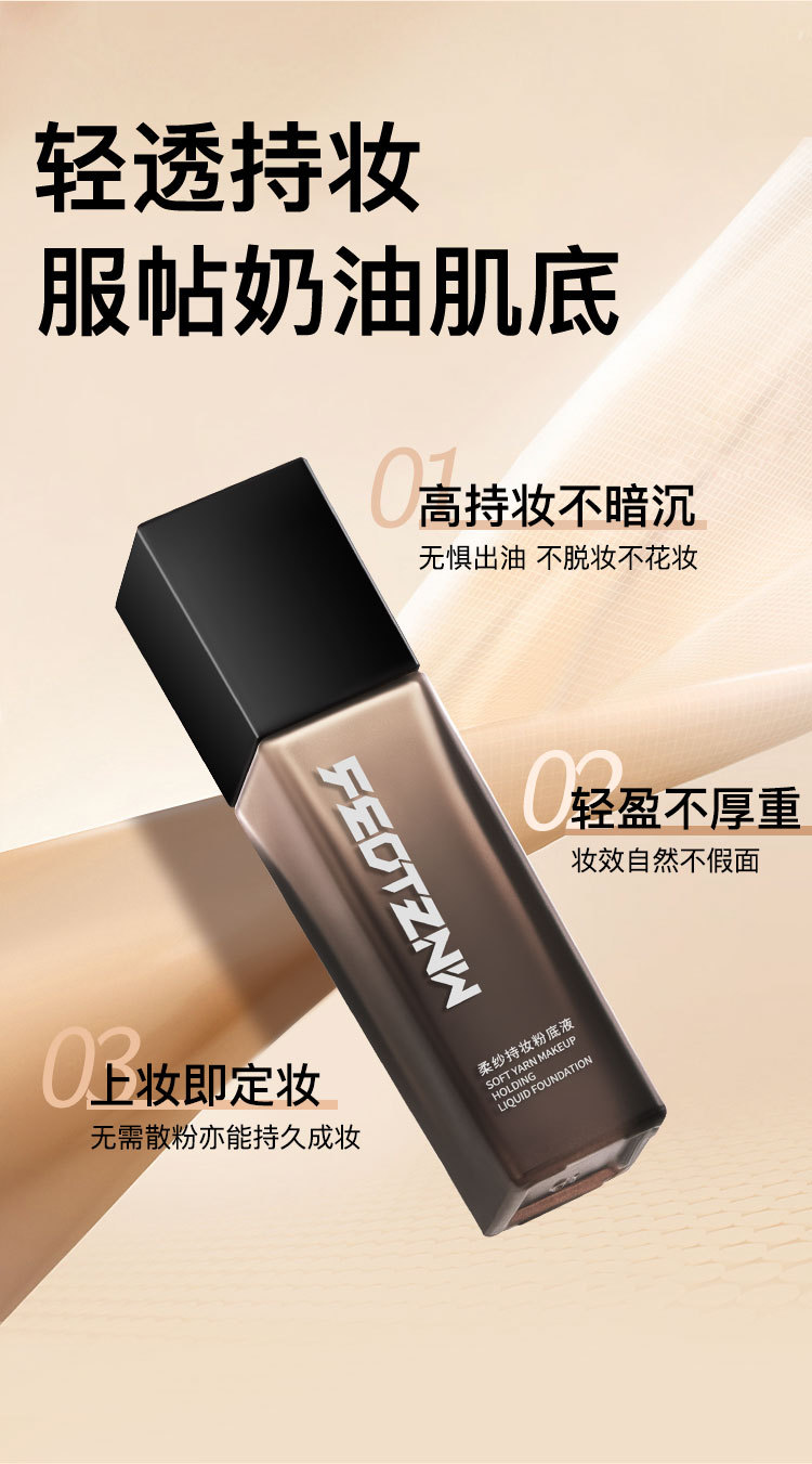 Fatini Мягкая Марлевая Долговечная Макияж Жидкий Основание, Долговечный, Не Смываемый, Консилер, Водонепроницаемый, Потоустойчивый, Увлажняющий и Питающий, Тот Же Стиль, Что И На Douyin