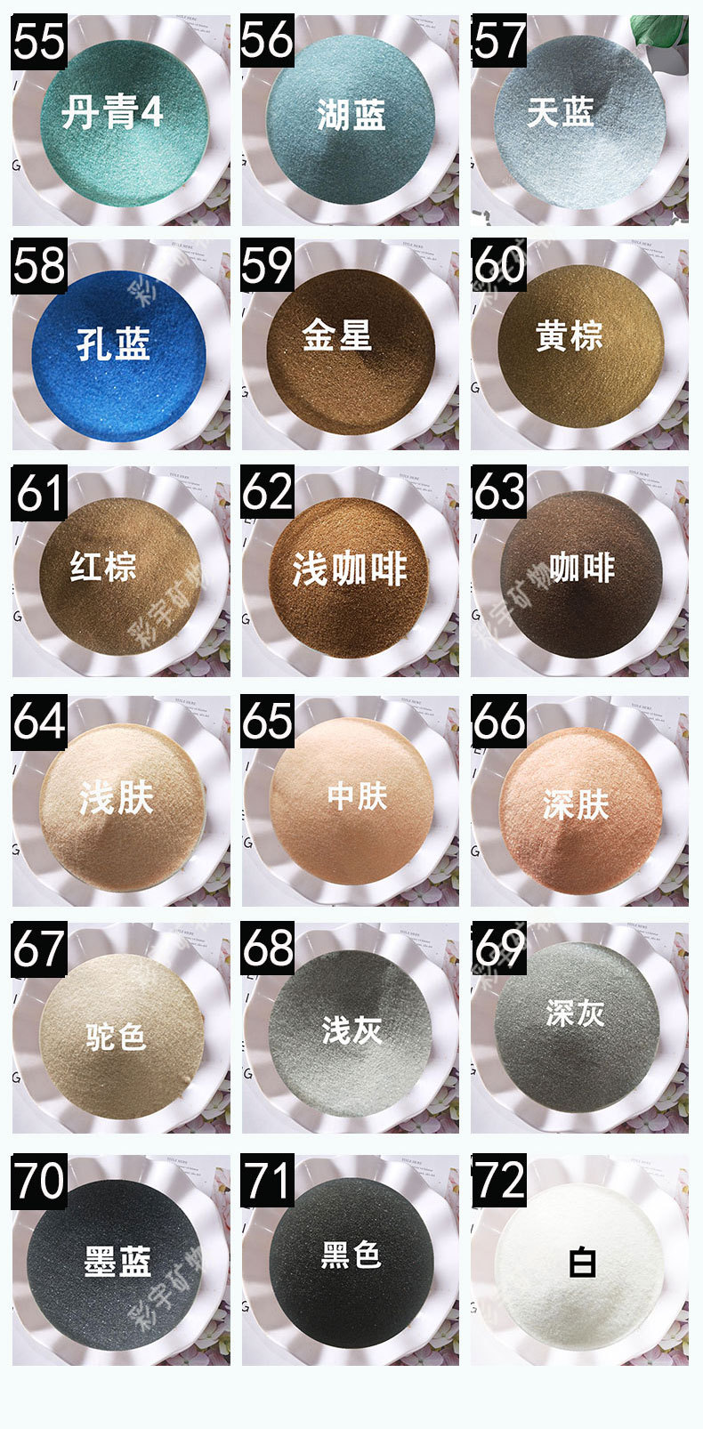 ![]() | 12 dark powder 0.5kg /bag | Minimum order of 2 bags can be selected in 2 colors (colors can also be noted or sent to customer service) | ¥2.89 / ≈ 35 ₽ | 99961 | 5749389208775 | |
