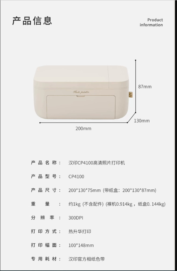 Мини-принтер фотографий Hanyin Cp4100, портативный, мгновенная печать, цветная, с Bluetooth, сублимация