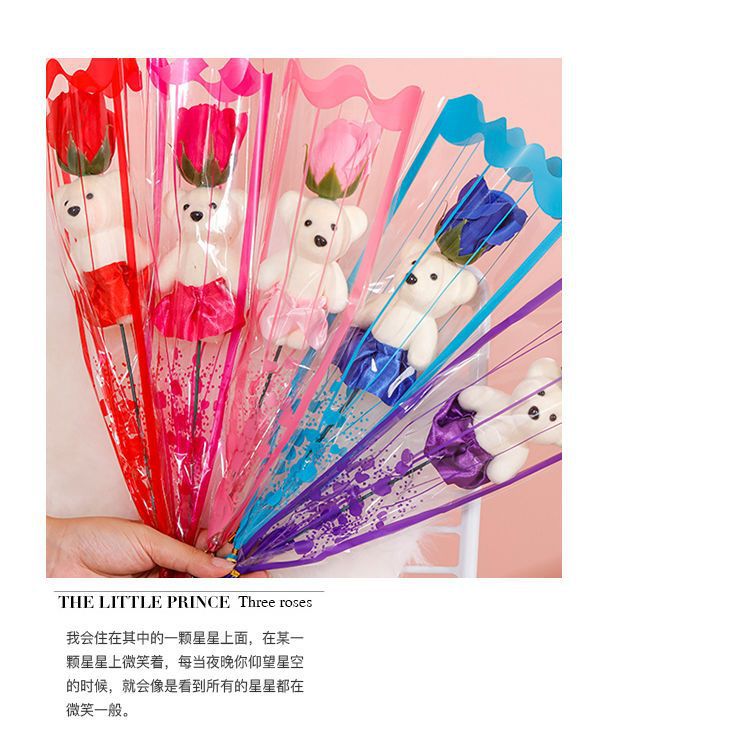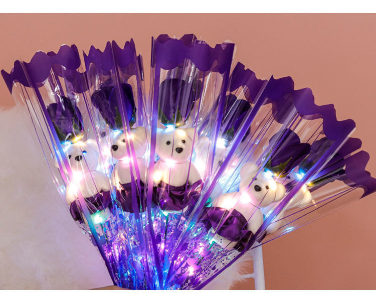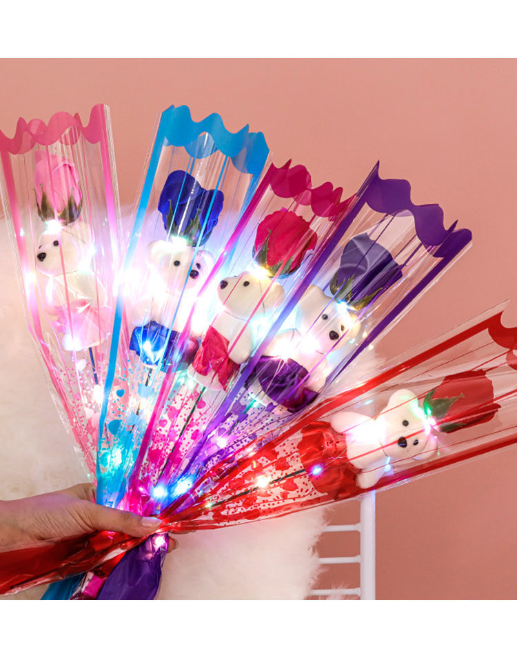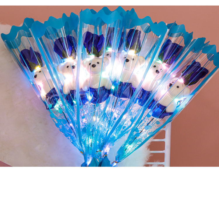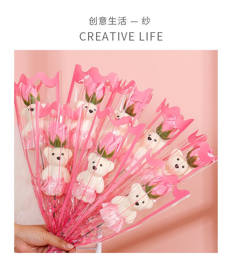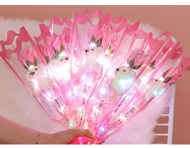 花束宽度8cm,长度40cm,无花款9g带花款15g,发光款25g,小熊高度10cm,一箱500支,体积0.24