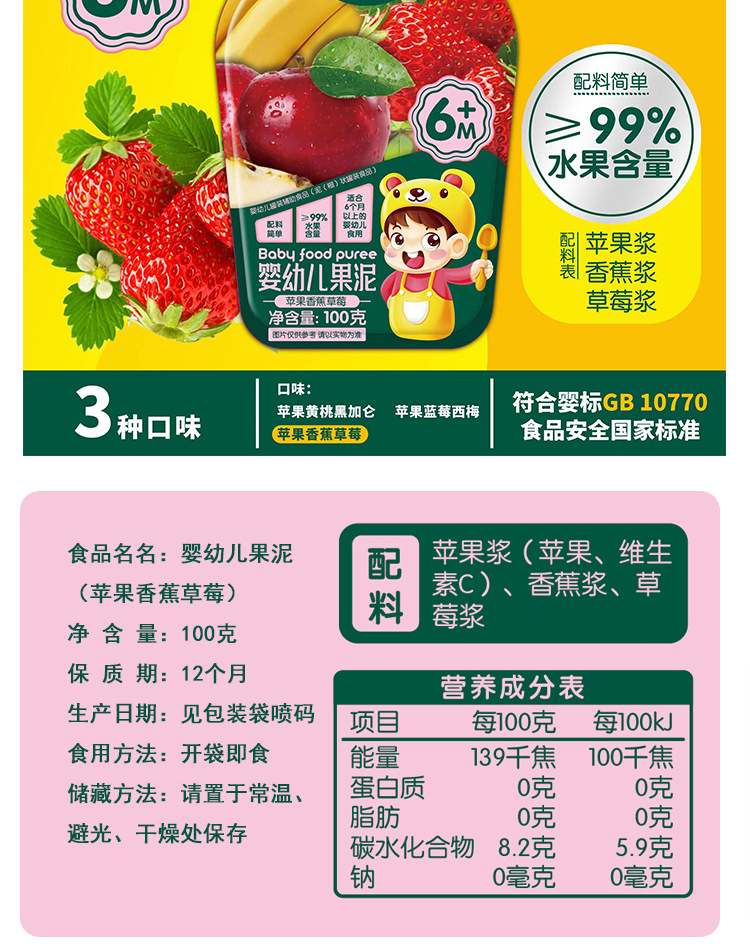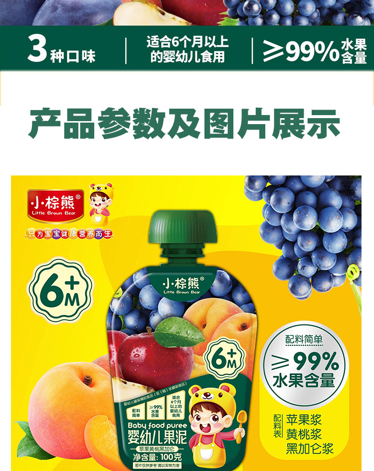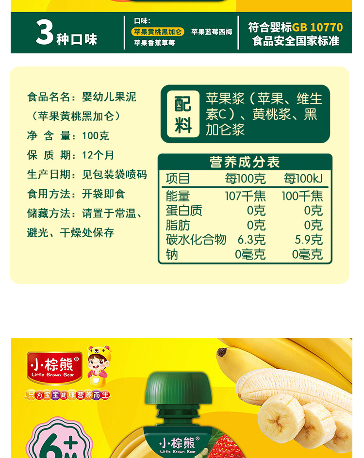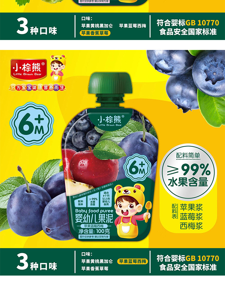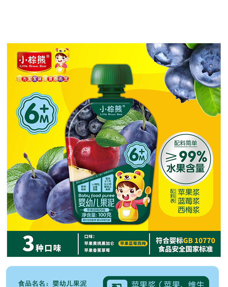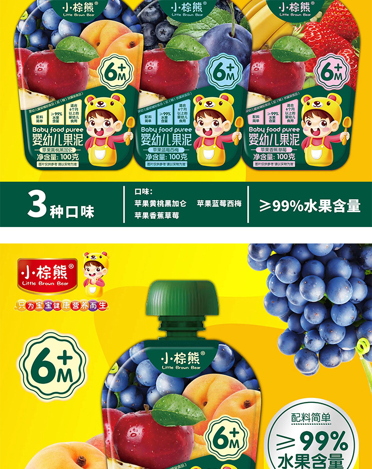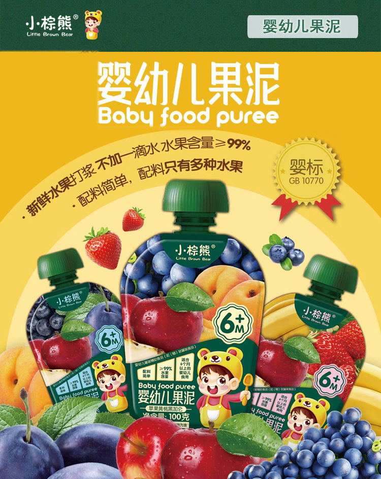 Маленький коричневый медвежонок 12 по цене 1 бесплатно фруктовое пюре три вкуса 100г/пакет фруктовое пюре добавка к пище
