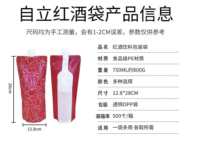 Оптовая сумка для вина 750 мл, портативная уличная водная сумка, утолщенная самоподдерживающаяся сумка для хранения воды
