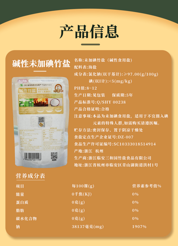 Санхэюань подлинная щелочная не йодированная жареная бамбуковая соль здоровая без антикомкователя без йода приправы соль пищевая соль