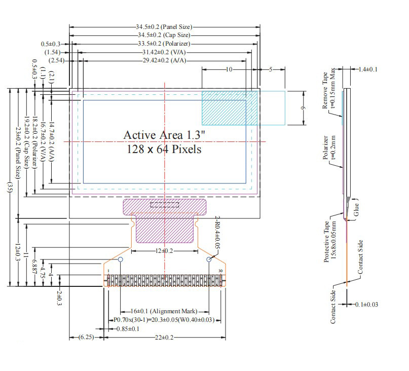 Дисплей Oled 1.3 дюйма с драйвером Sh1106, экран 12864 точек, 30 пинов, сварка Lcd12864