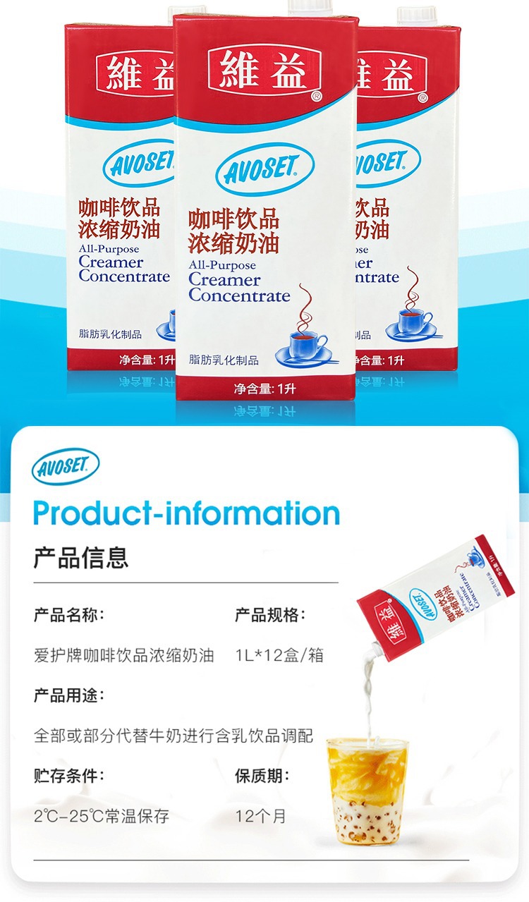 Кофейные сливки Care 1L концентрированные растительные жиры молочный крем для кофе молочный чай кафе коммерческое использование