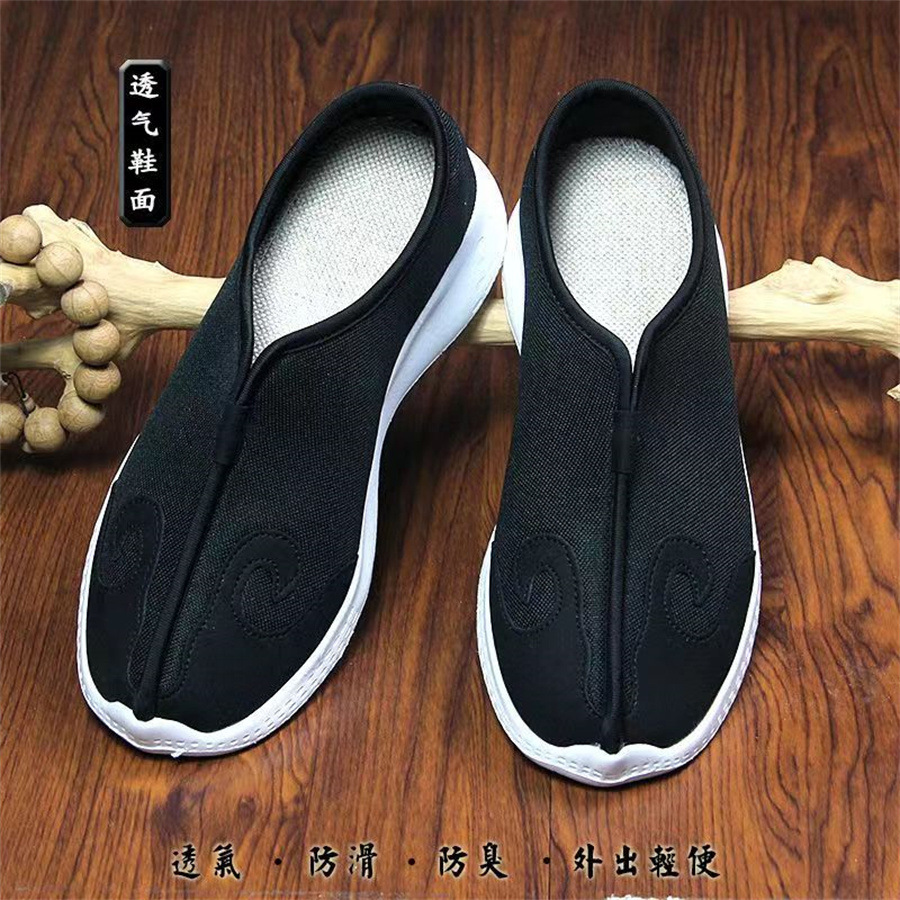 Весенние и летние таоистские туфли с крючком, квадратные туфли, канвасовая поверхность, новые туфли, мягкая подошва, нескользящие, дышащие, легкие