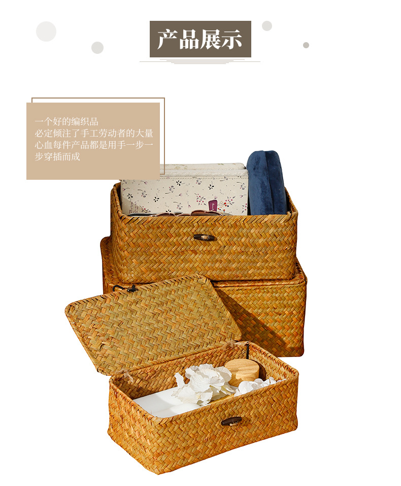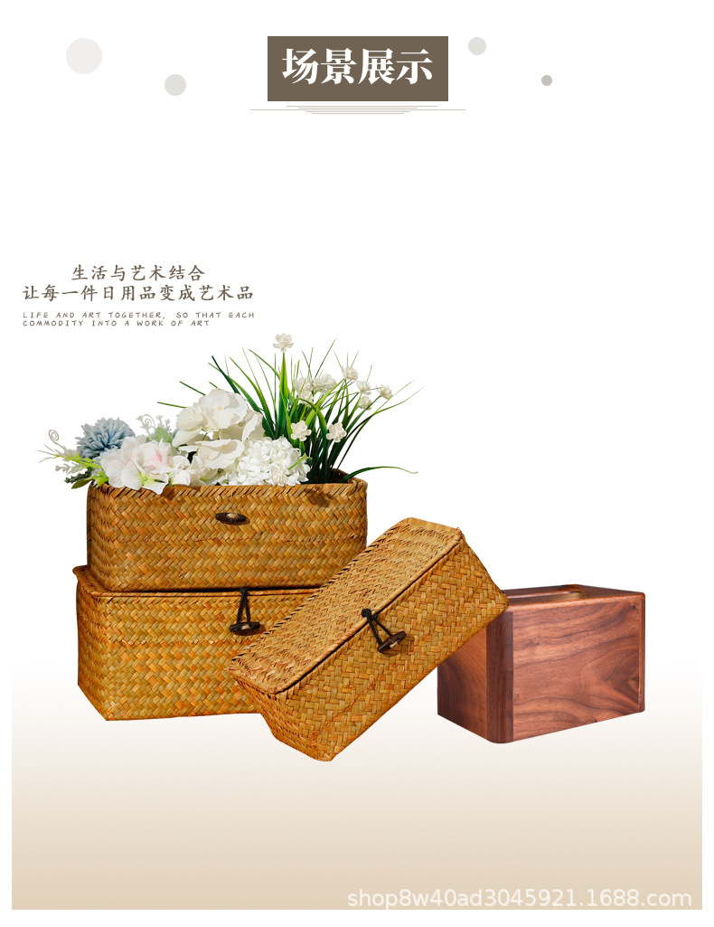 Ручная соломенная корзина для хранения, настольная отделка, свадебная подарочная коробка, художественные пасторальные хозяйственные принадлежности, коробка для хранения с крышкой