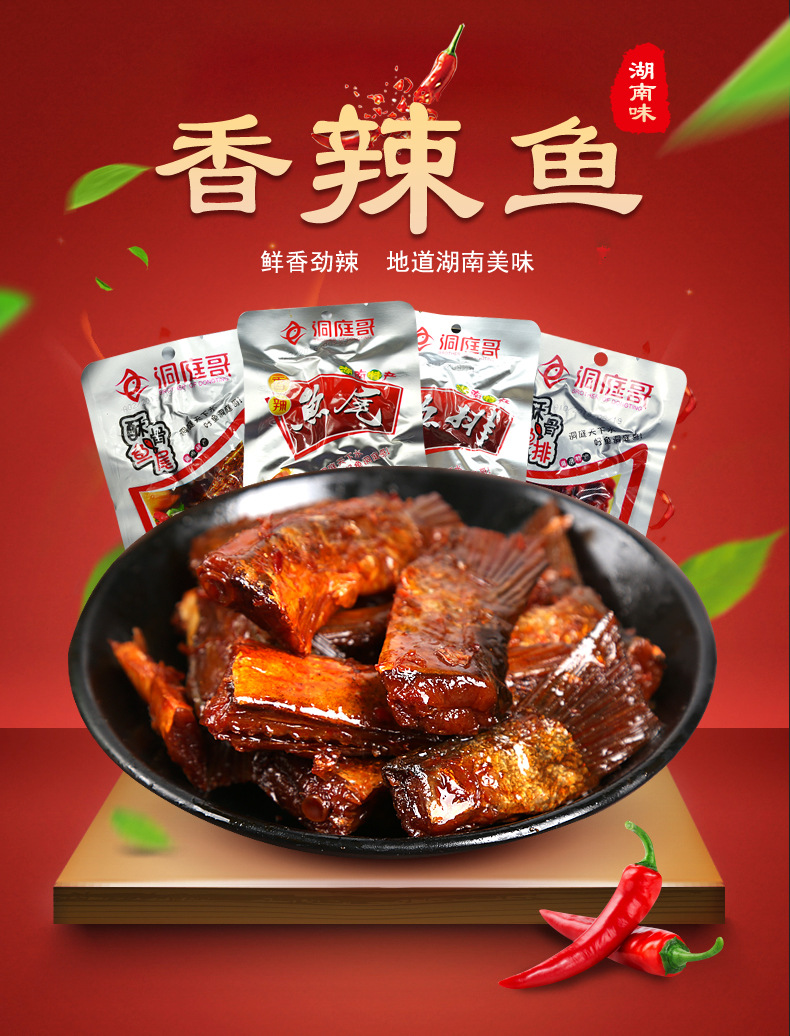 Брат Дунтин острый рыбный хвост рыбный стейк 26 г * 40 пакетов закуски из Хунани оптовая острая сушеная рыба