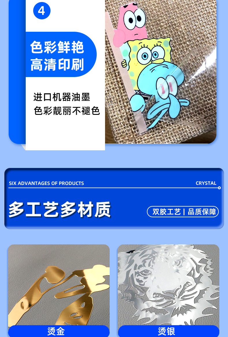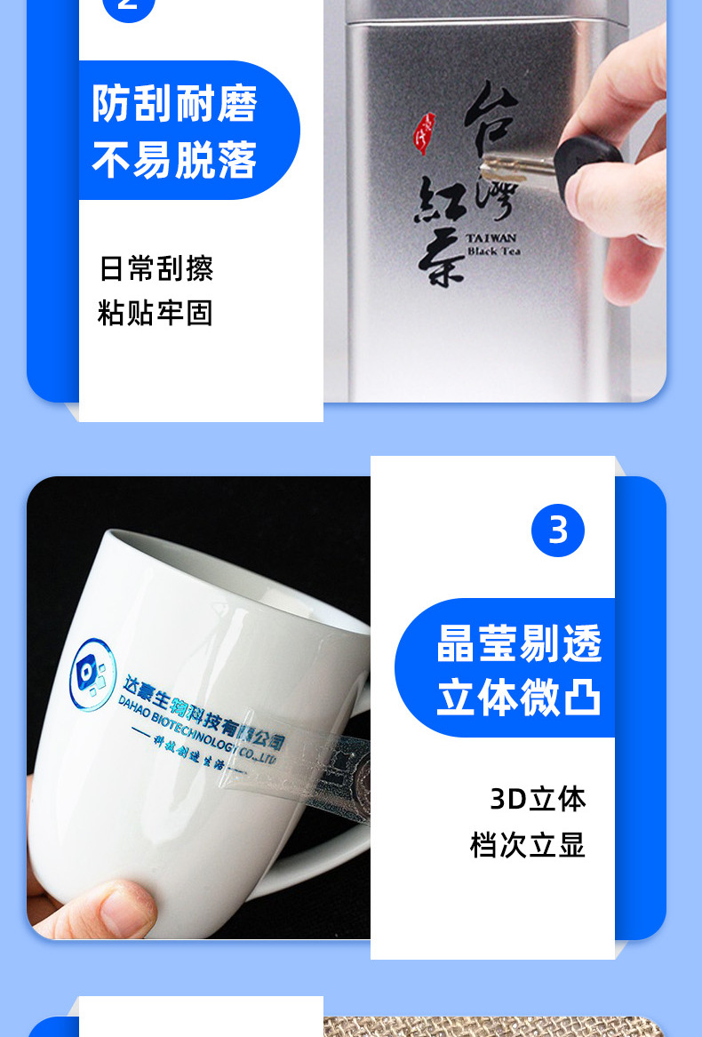 Кристаллическая наклейка логотипа УФ-перенос водонепроницаемая прозрачная наклейка