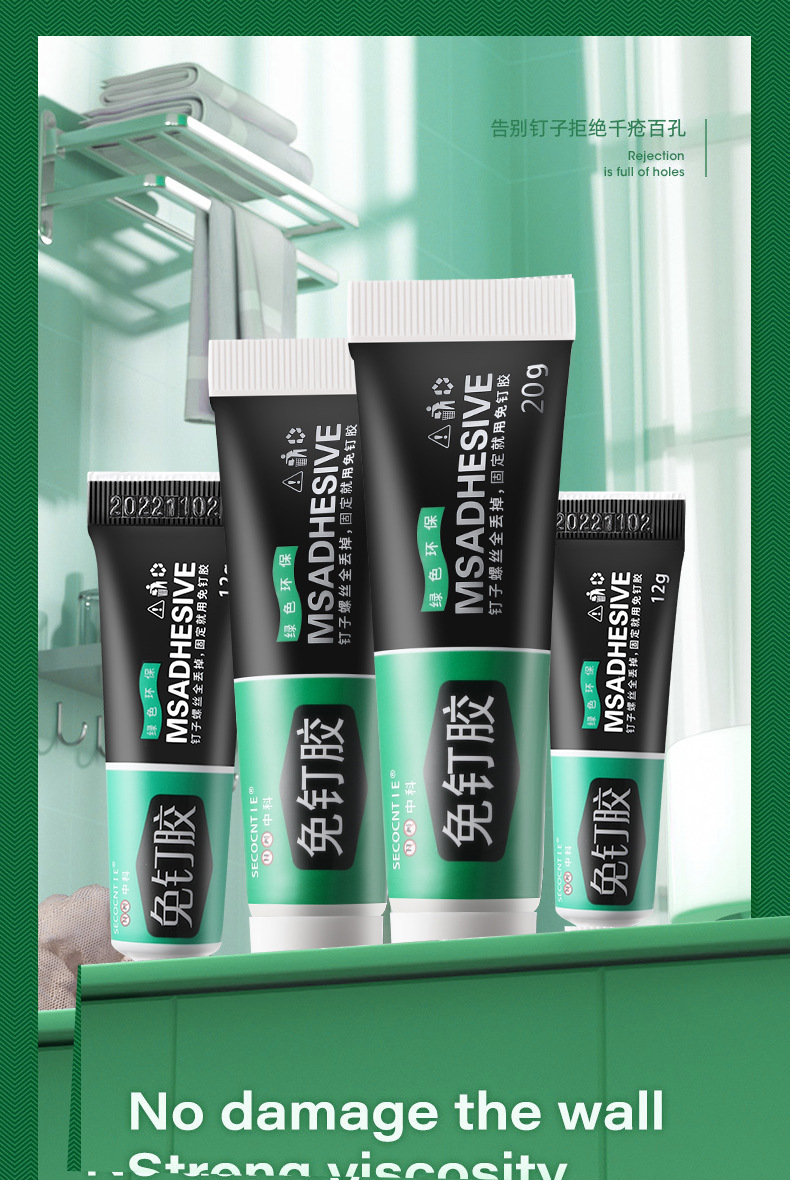 Клей без гвоздей, сильный клей без гвоздей, водонепроницаемый, без пробивания, для ванной, быстро сохнущий, универсальный клей для стекла, клей без гвоздей