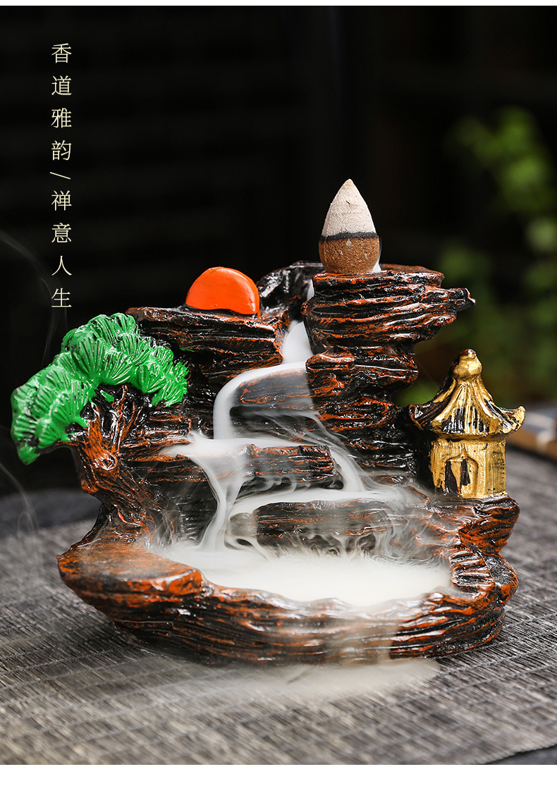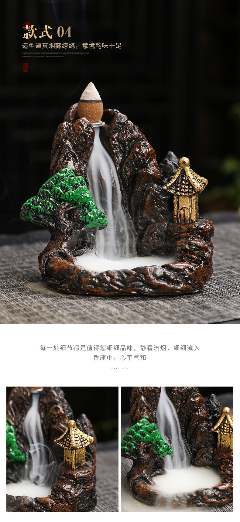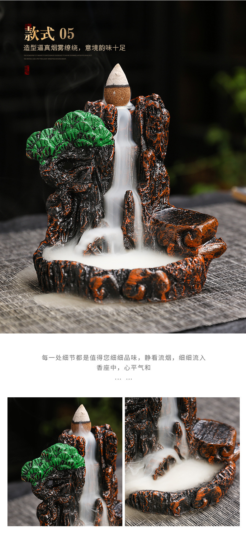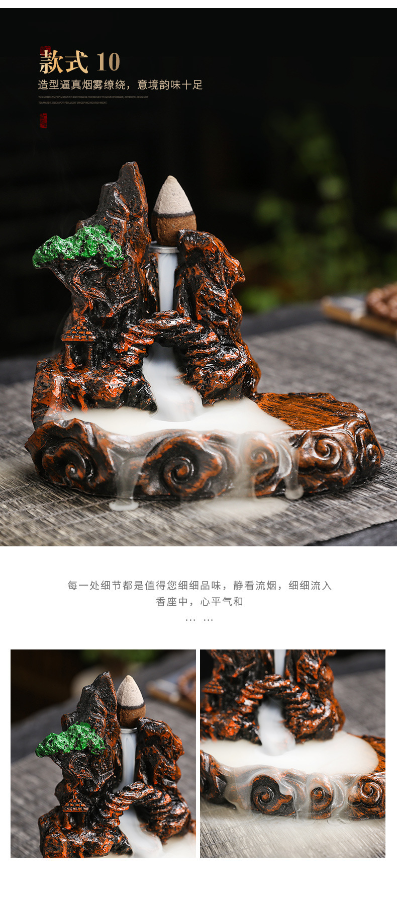 Кросс-браузерный подставка для обратного потока благовоний оптовая продажа смола дзен пейзаж обратного потока просмотр далеких гор офис домашняя подставка для благовоний