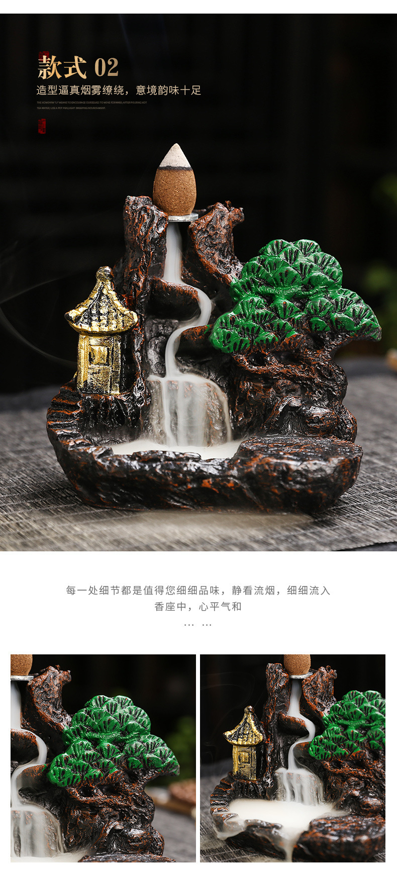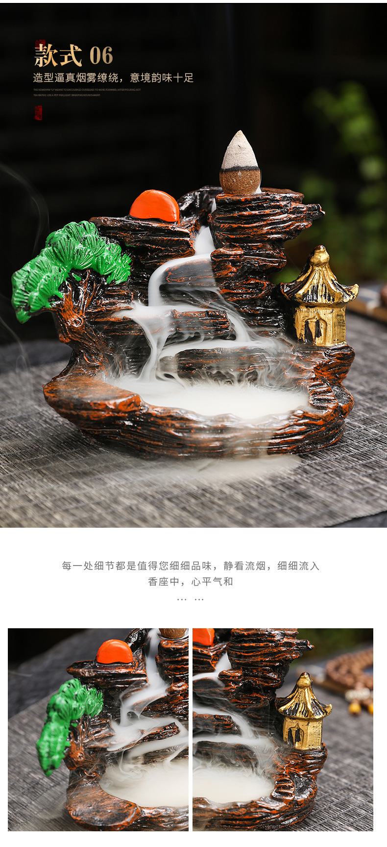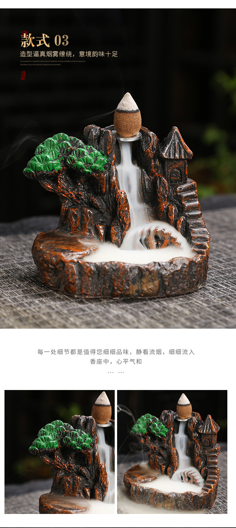 Кросс-браузерный подставка для обратного потока благовоний оптовая продажа смола дзен пейзаж обратного потока просмотр далеких гор офис домашняя подставка для благовоний