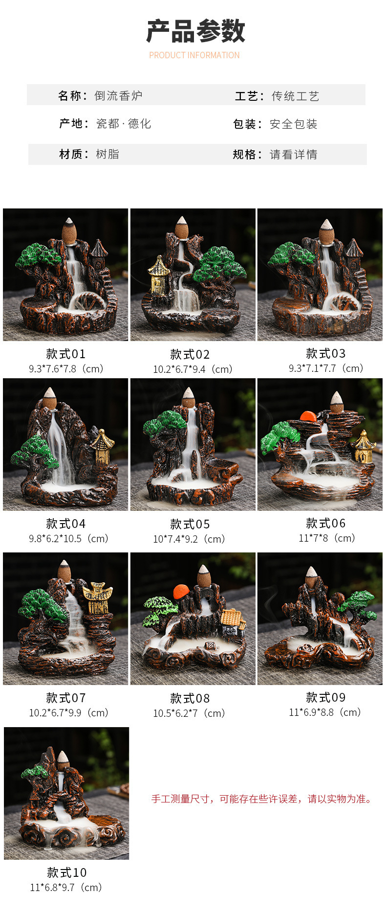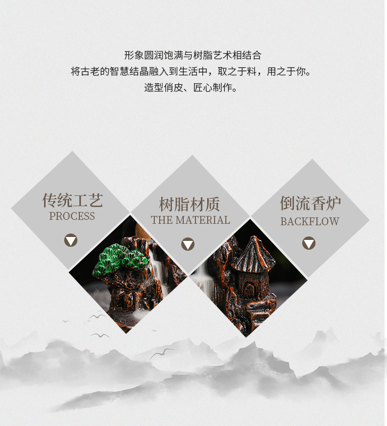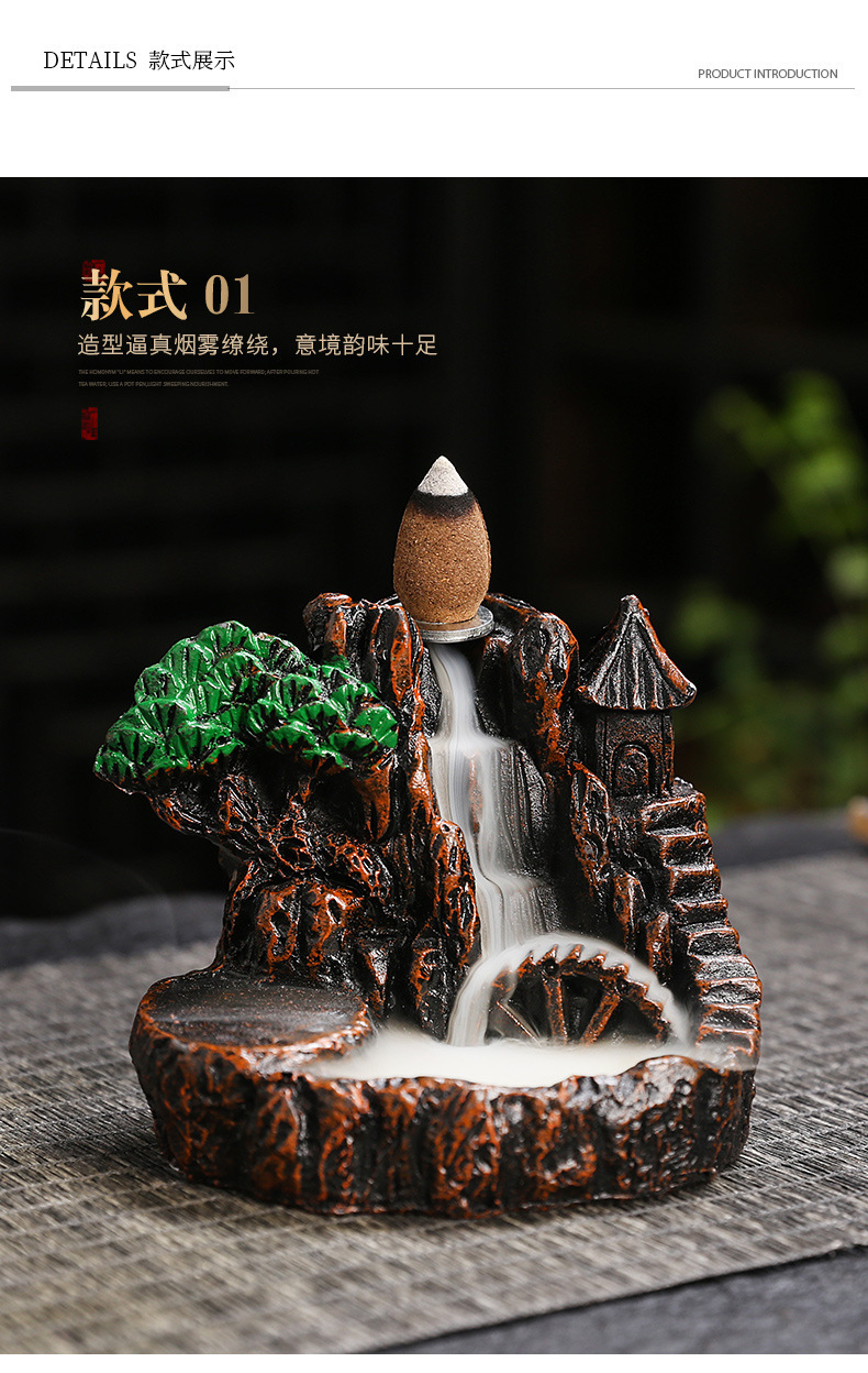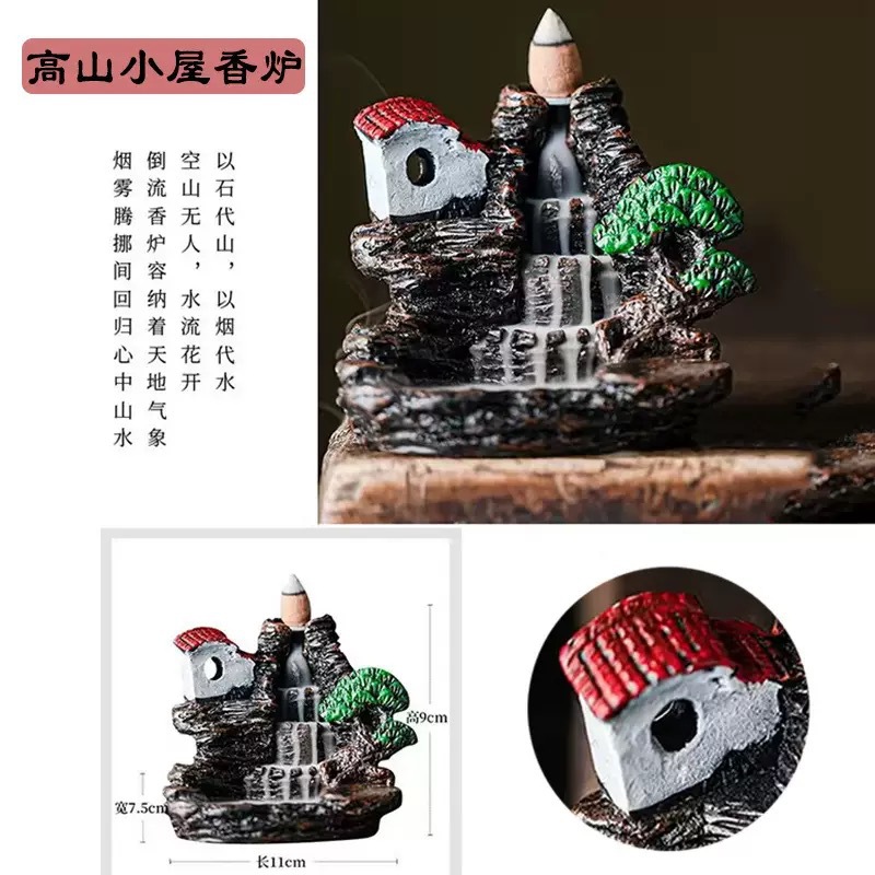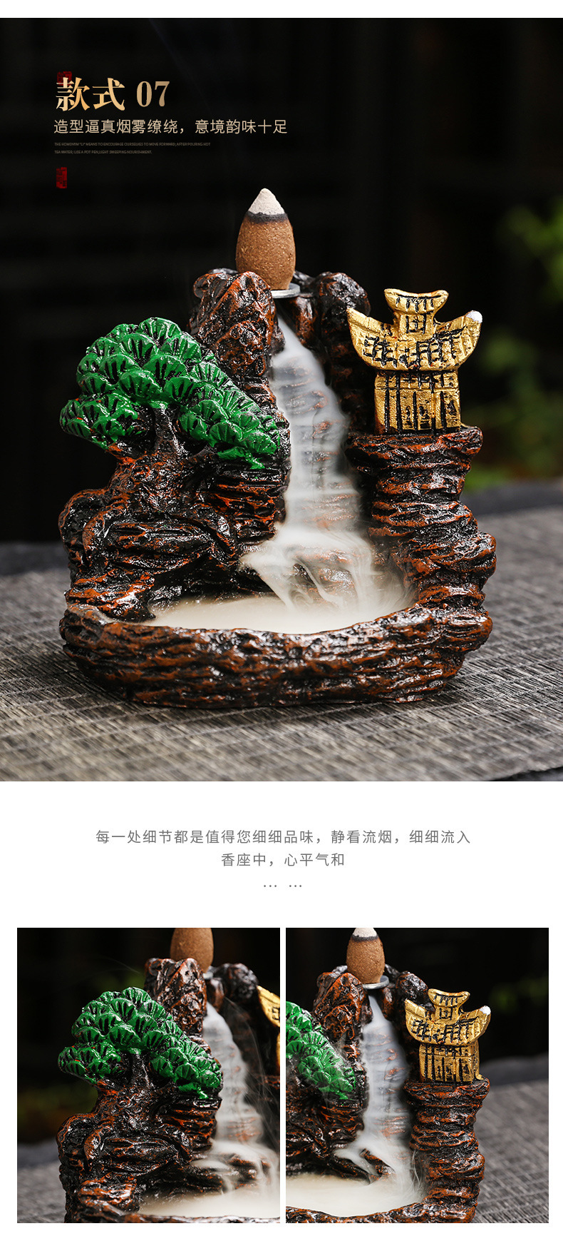 Кросс-браузерный подставка для обратного потока благовоний оптовая продажа смола дзен пейзаж обратного потока просмотр далеких гор офис домашняя подставка для благовоний