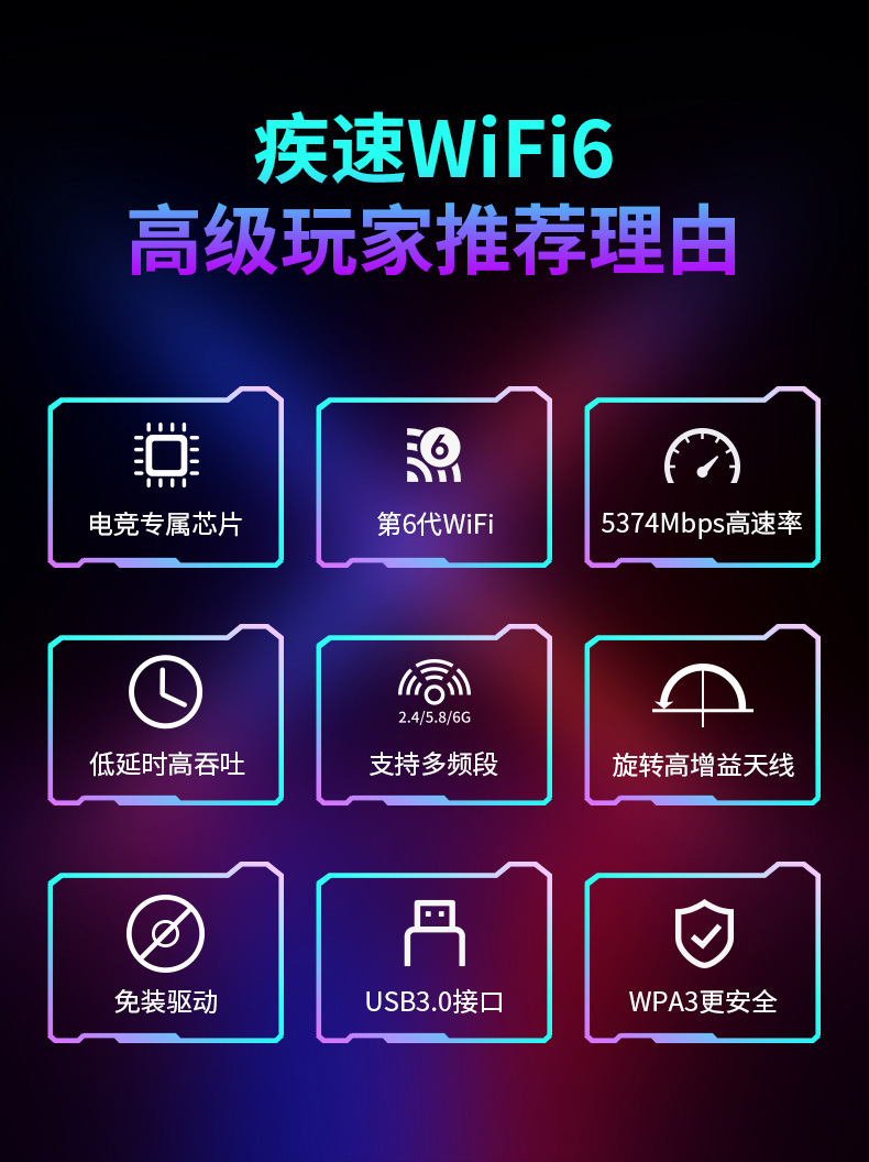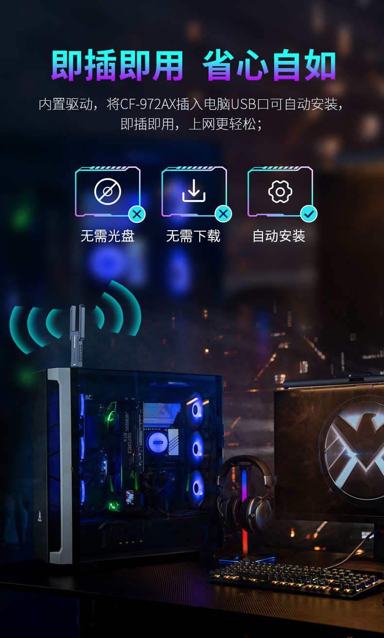 Comfast Cf-972Ax беспроводная сетевая карта USB без драйвера WiFi приемник Wifi6E три диапазона 5374Mbps