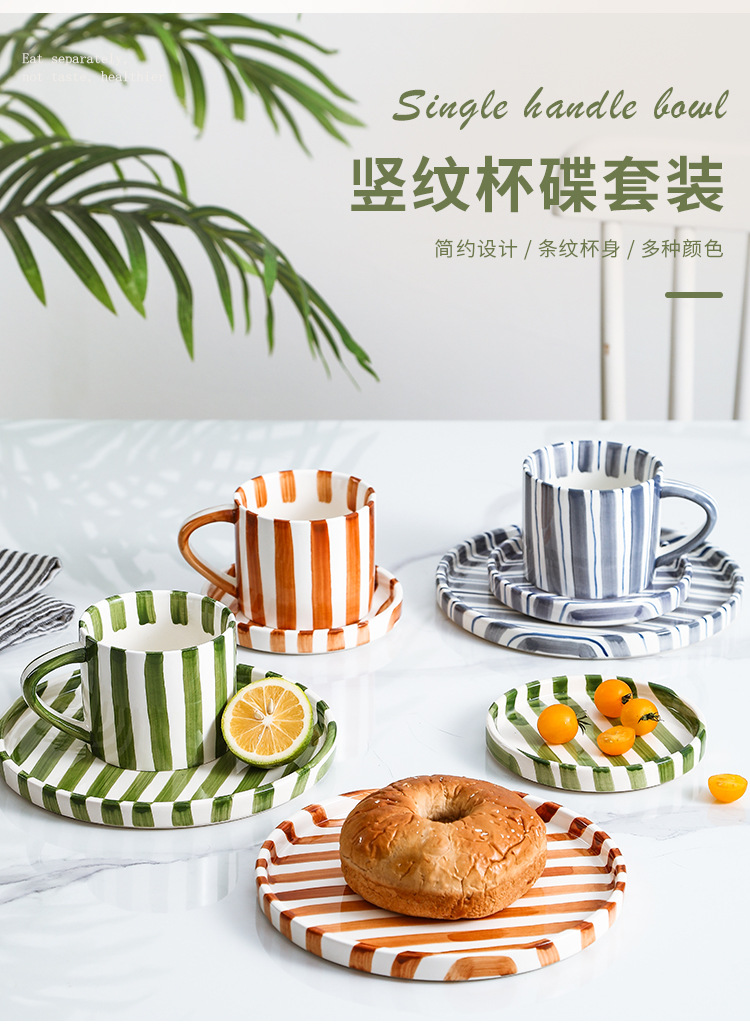 Простая керамическая чашка для кофе с блюдцем, набор чашки и блюдца с высоким цветовым значением, домашняя водяная чашка, европейский стиль для послеобеденного чая