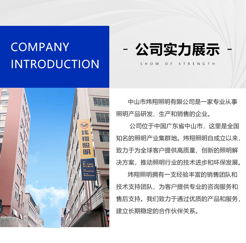中山市炜翔照明有限公司成立于2019年,是一家专注于LED研发、生产销售一体的专业生产厂家。公司经过多年的研究和发展,引用了先进的设备和专业LED��具生产车间,同时拥有了一支强大的研发和销售团队。