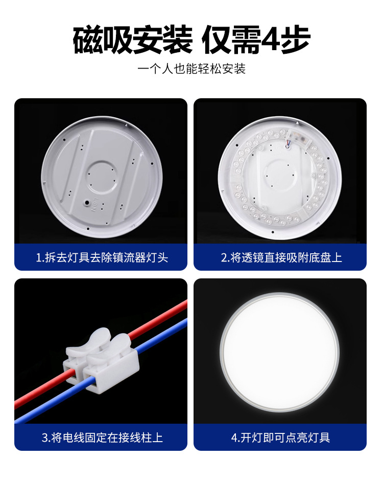 Производитель, оптовая продажа, светодиодная потолочная лампа, зал, спальня, супер яркая, круглая замена, магнитный трехцветный источник света
