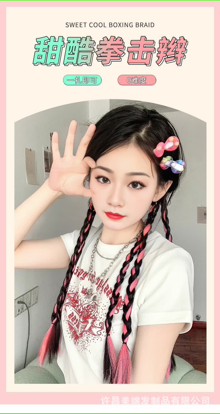 Парик женская боксерская коса сладкая крутая прическа грязная коса с мелированием, закрученная коса, длинные волосы двойной хвостик парик