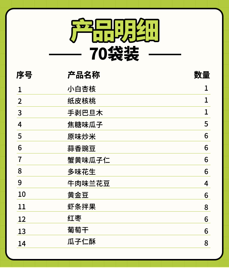![[three squirrels_fried snacks gift bag 650 g/bag] mixed nut gift bag daily nuts](/api/image?url=https%3A%2F%2Fcbu01.alicdn.com%2Fimg%2Fibank%2FO1CN01DkLTAa1EkfKeGBjUz_!!3914850390-0-cib.jpg)