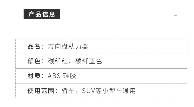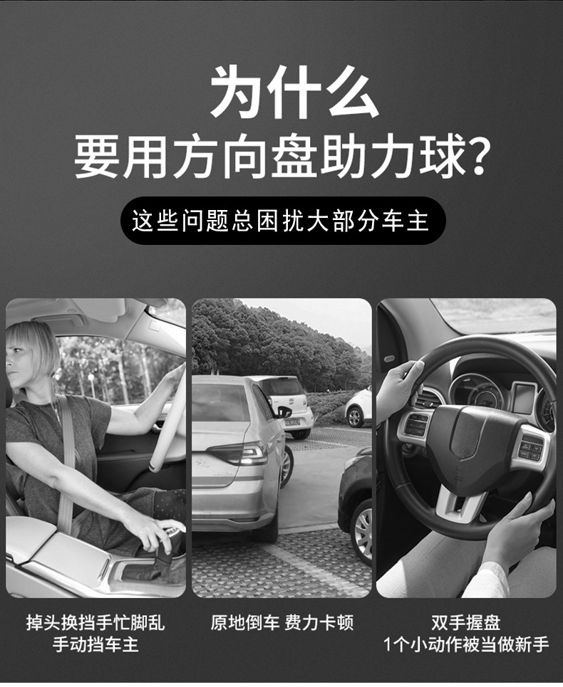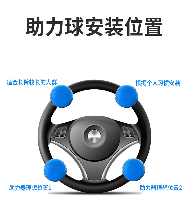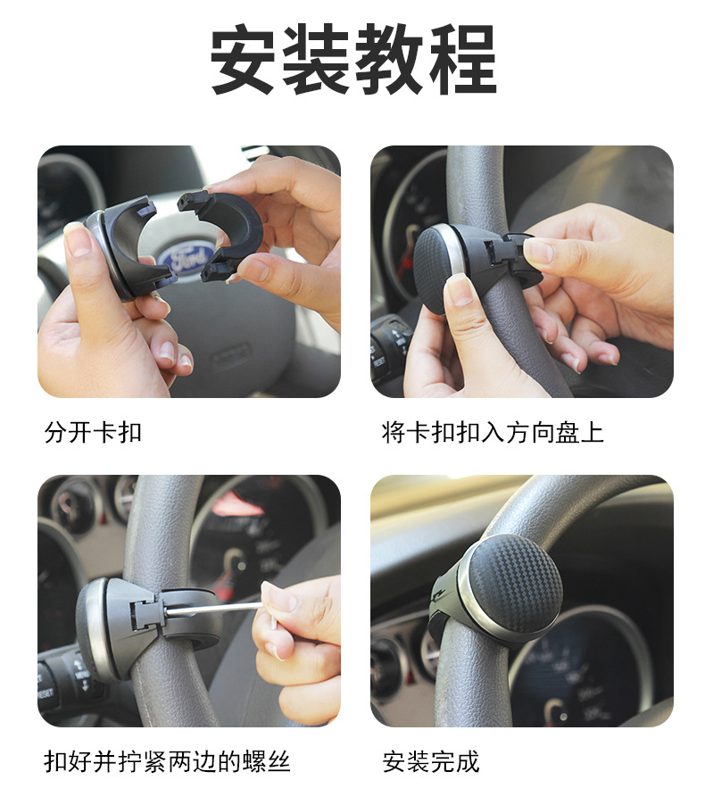 注意:仅适用于原车带助力的方向盘。仅限20KM时速以下使用。使用前确保助力器锁紧牢固。如果方向盘已装有方向盘套,可将U型软垫取下,再安装助力器。