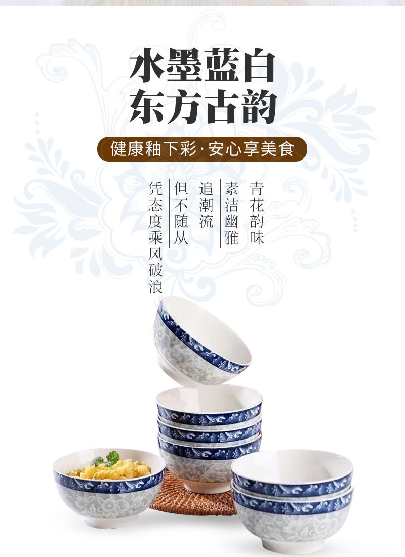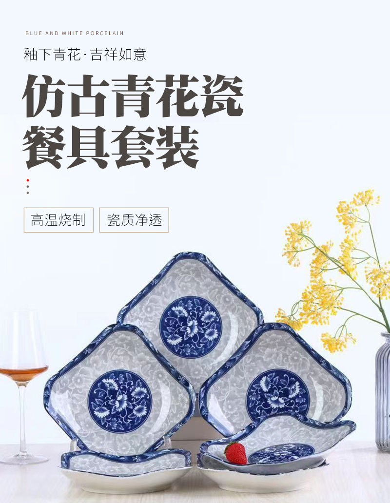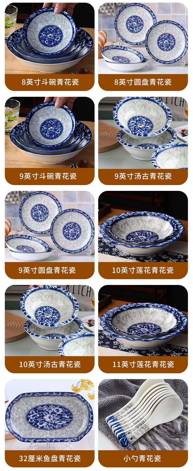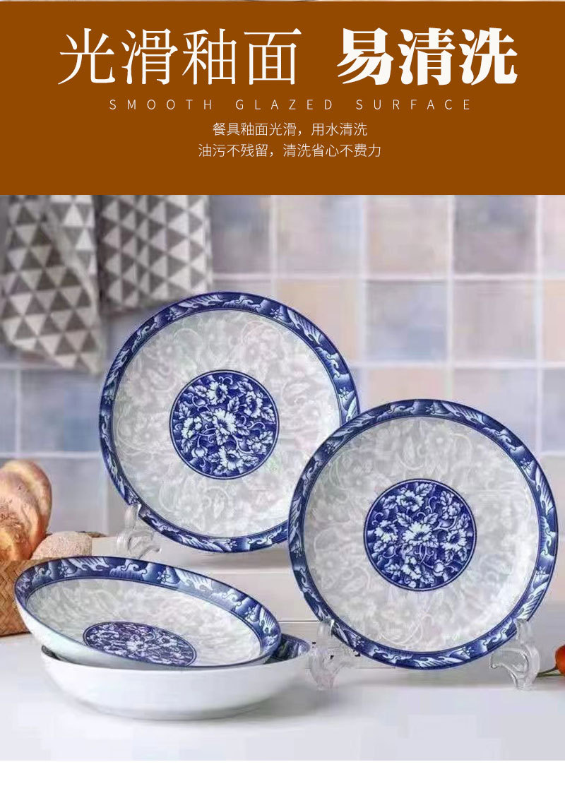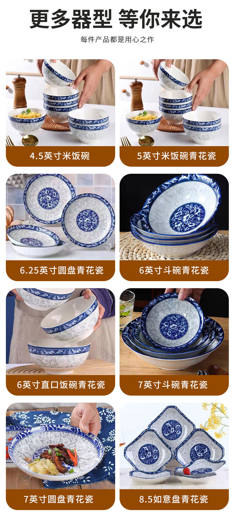 Керамическая тарелка синего и белого цвета, тарелка для риса, суповая тарелка, фруктовая тарелка, обеденная тарелка, посуда для микроволновки