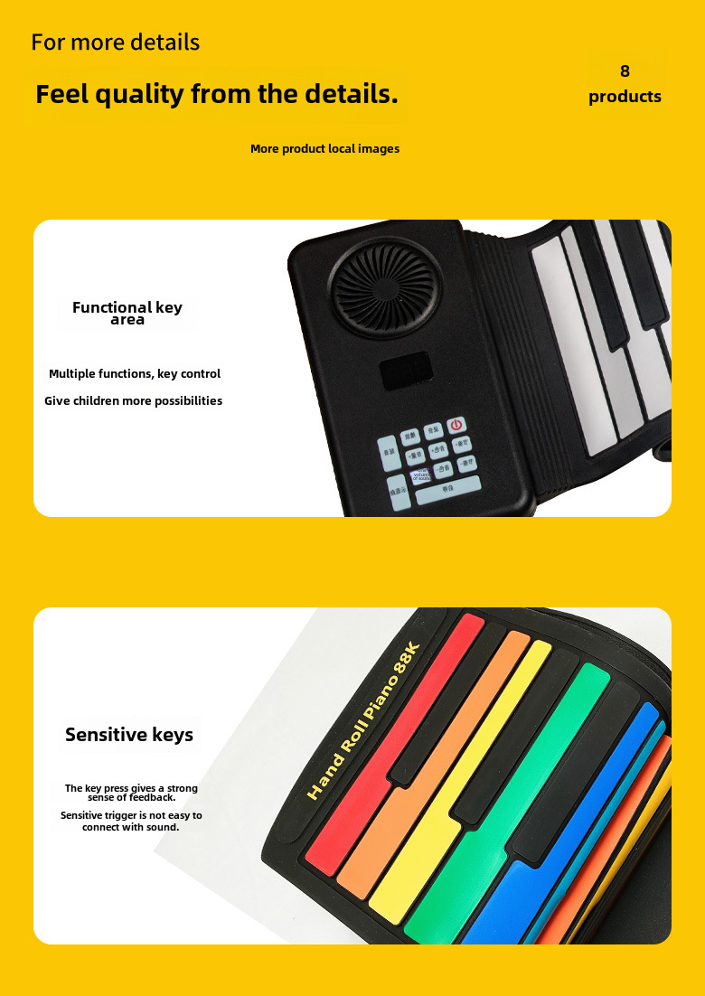- Eco-friendly Silicone Roll:The piano features an eco-friendly silicone roll, ensuring a smooth and comfortable playing experience while being gentle on the environment.