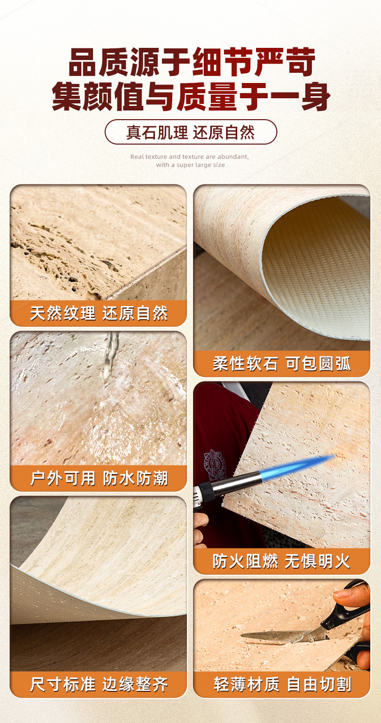 Номер товара Travertine, slate, flowing stone, coarse cloth pattern, star and moon stone, soft porcelain large board, qianmo stone travertine