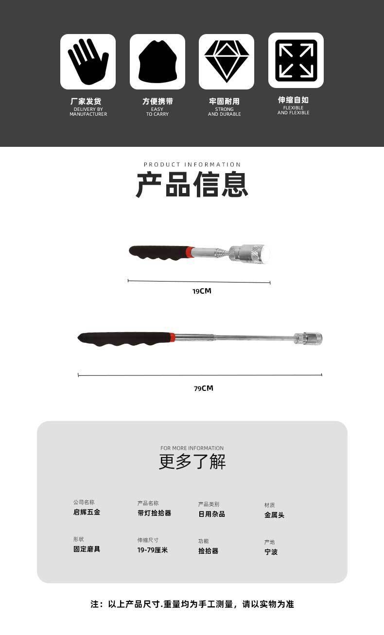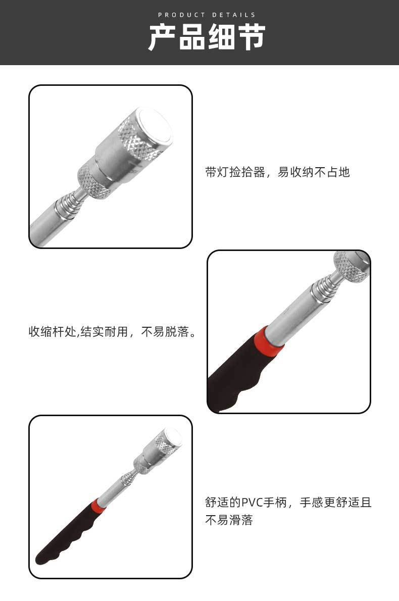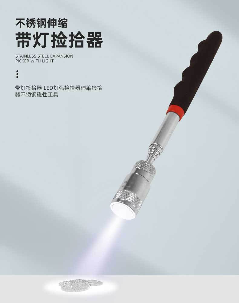 Настраиваемый телескопический магнитный подъемник с LED светом, магнитная палка, магнитный инструмент для металлических деталей