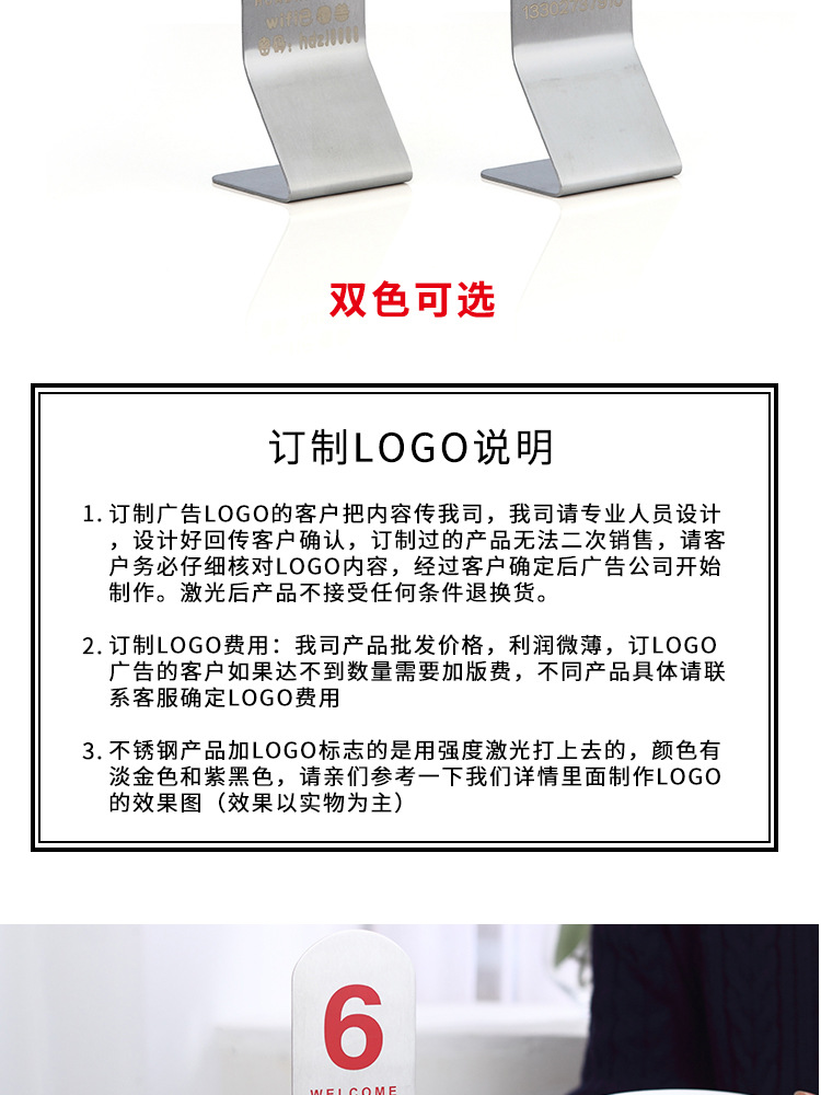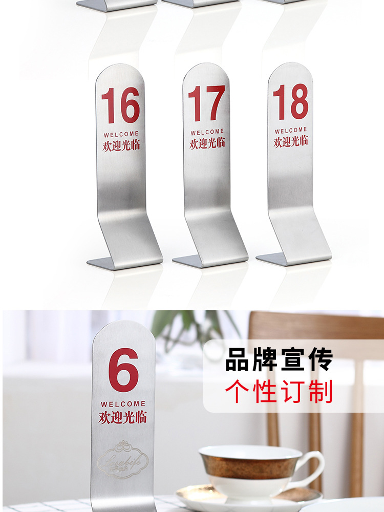 Двусторонняя номерная табличка из нержавеющей стали для ресторана подставка для меню столовый знак заказ с логотипом